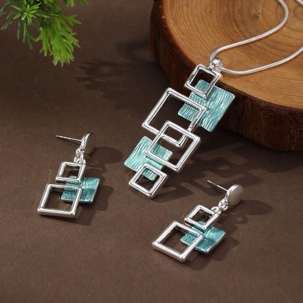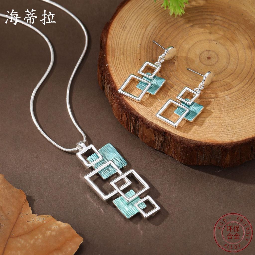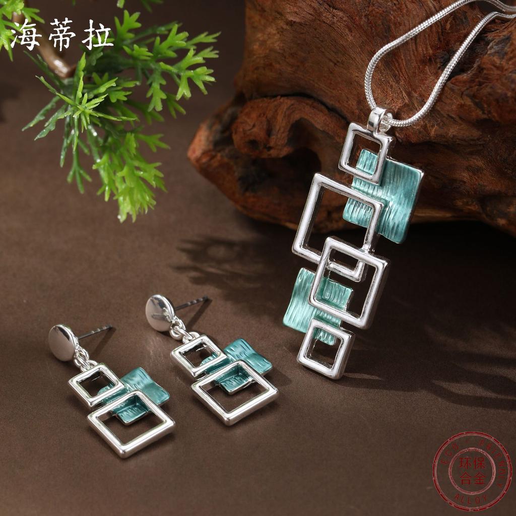 Новый эмалевый цвет геометрический полый квадратный набор сережек-гвоздиков с подвеской, женское простое и высококлассное ожерелье