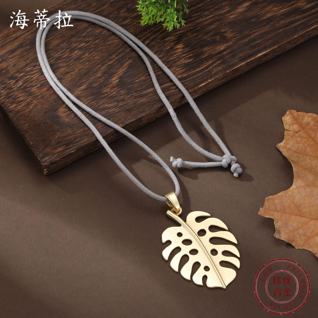 Новое тусклое золото нерегулярный лист бархатная длинная подвеска женская мода универсальный панцирь черепахи бамбуковое длинное ожерелье