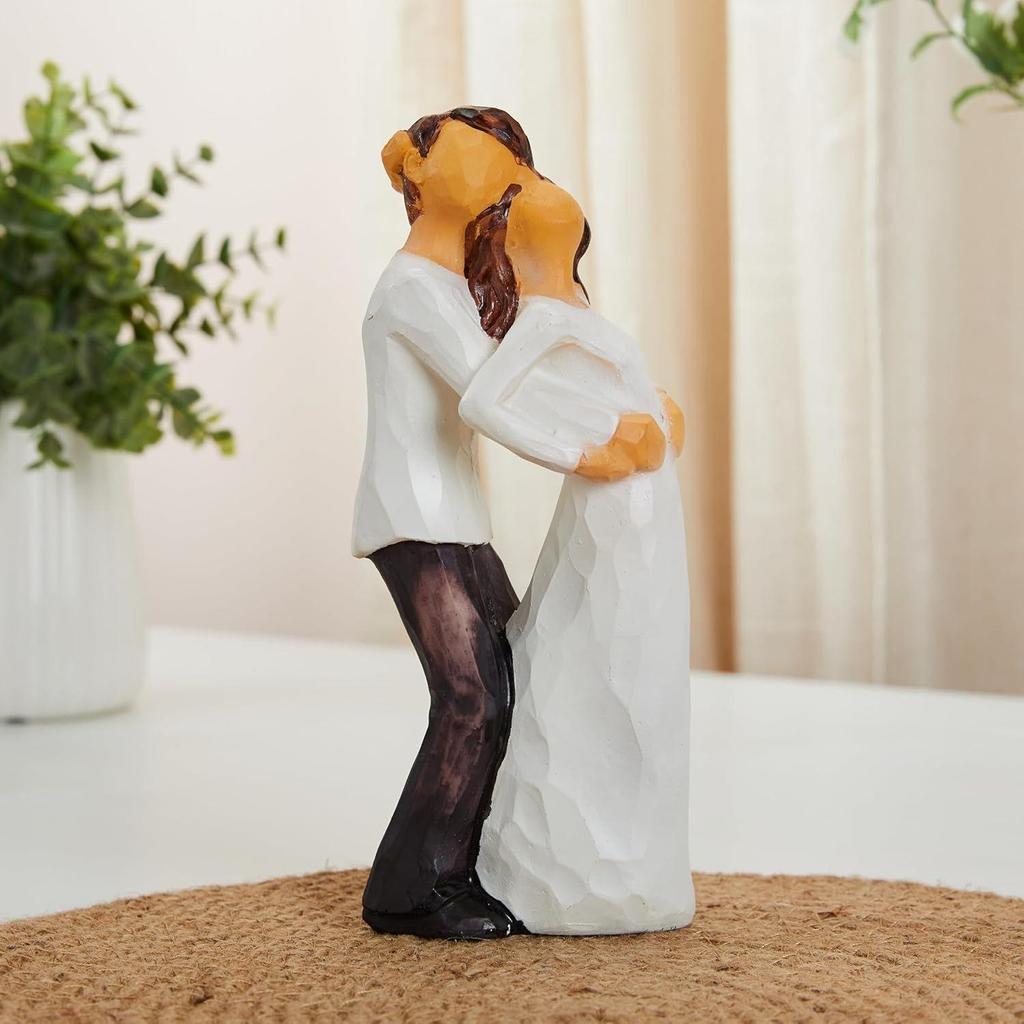 Расписанная вручную среднего размера смоляная романтическая пара в любви | Красивый домашний декор (Упаковка из 1 шт., белого и коричневого цвета)