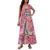 Женская Мода Повседневная А-силуэт Цветочный Принт Эффект Молотка Свободная Длинная Юбка с Карманами