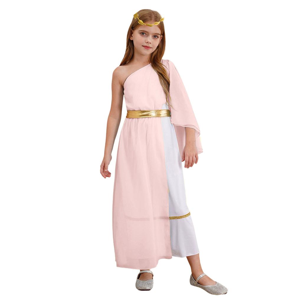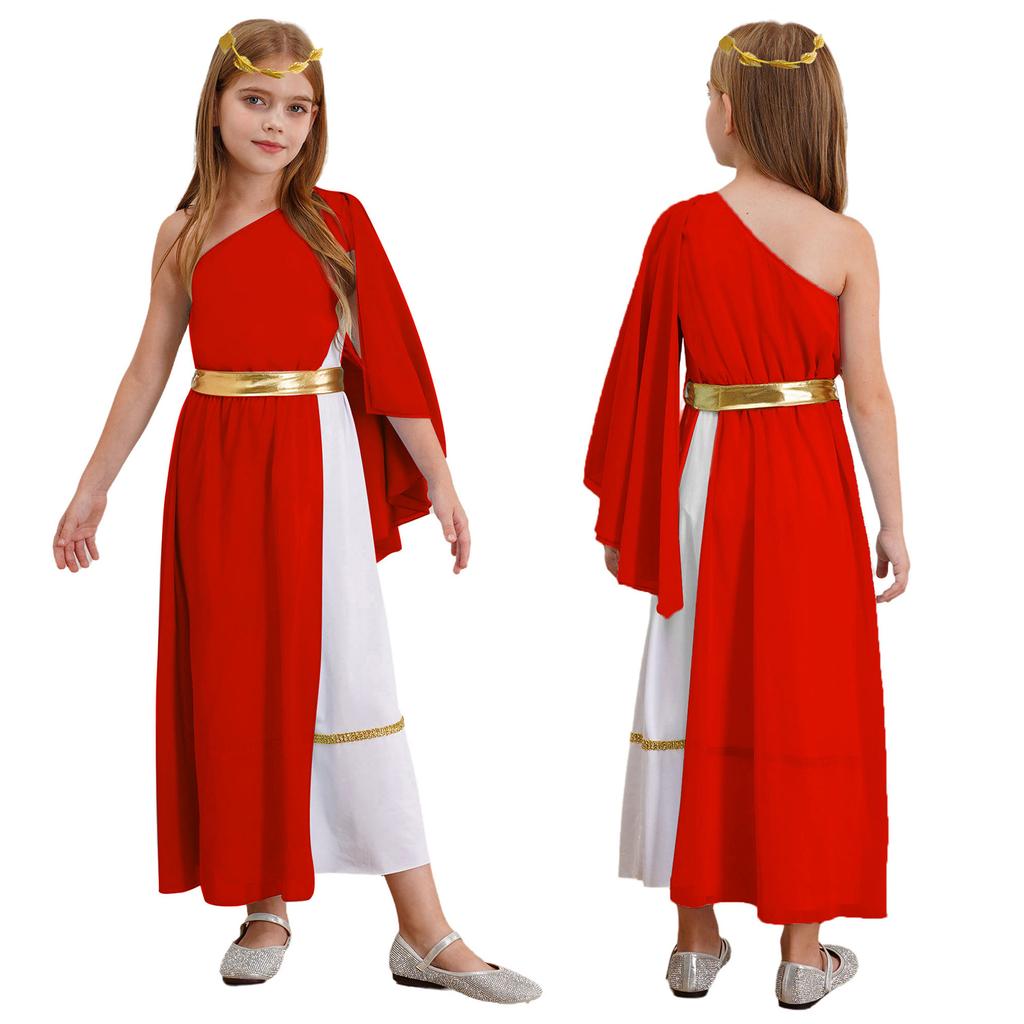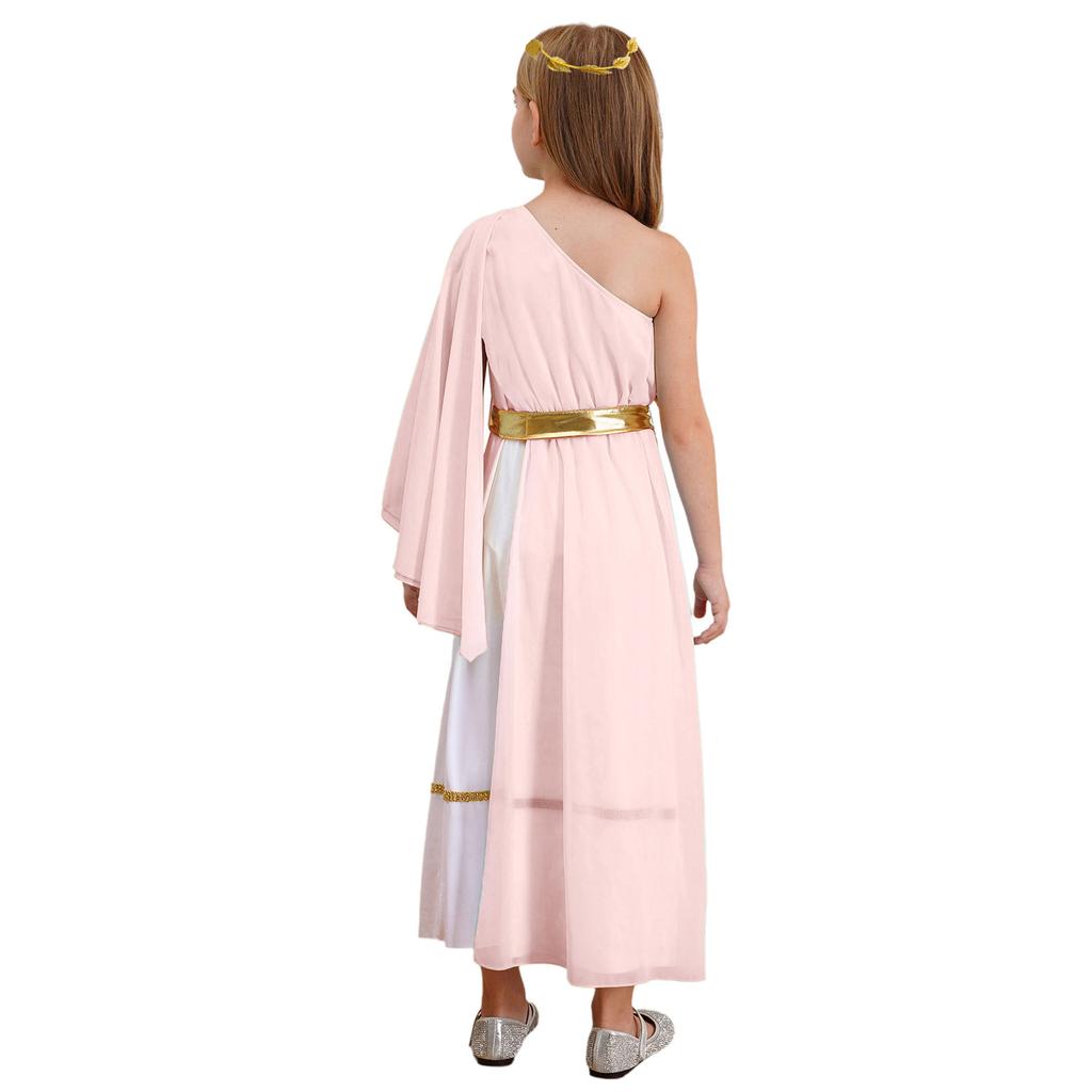 Детское платье-тога древней богини, асимметричный дизайн, повязка на голову с листьями, мифологический костюм для косплея