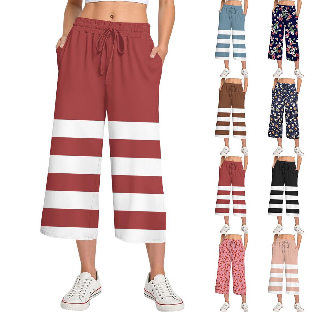 Женские летние повседневные спортивные брюки с высокой талией и принтом, укороченные брюки свободного покроя — купить товар онлайн с бесплатной доставкой по всему миру!
