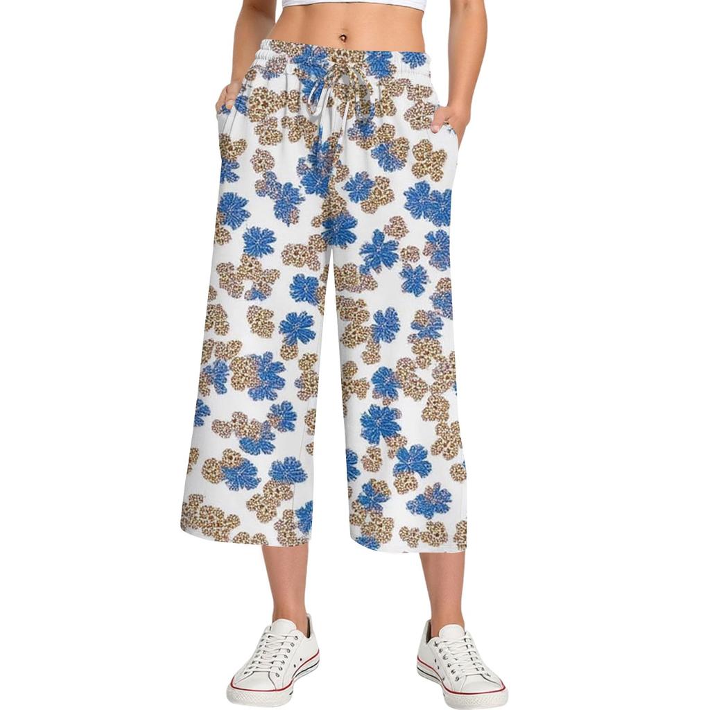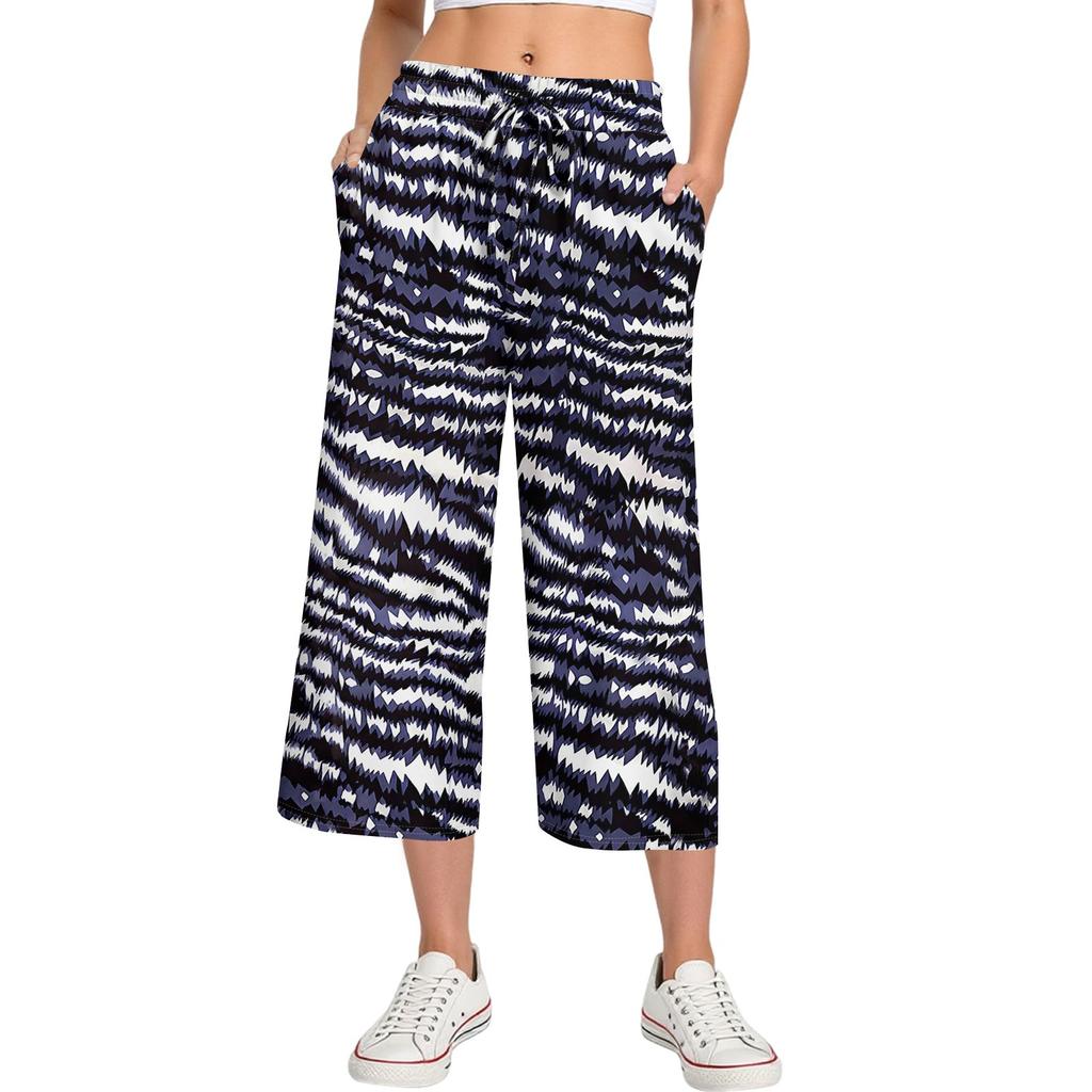 Женские летние повседневные спортивные брюки с высокой талией и принтом, укороченные брюки свободного покроя