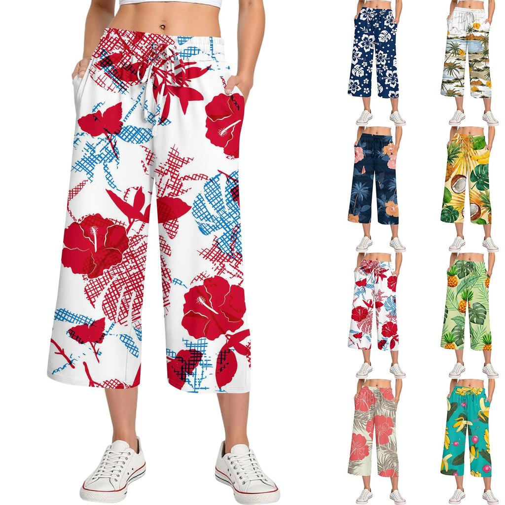 Женские летние повседневные спортивные брюки с высокой талией и принтом, укороченные брюки свободного покроя — купить товар онлайн с бесплатной доставкой до всему миру!