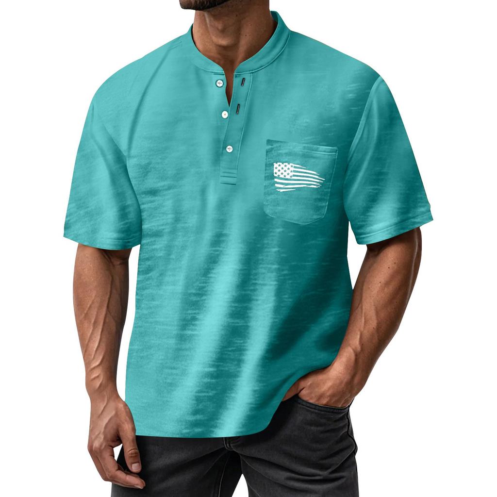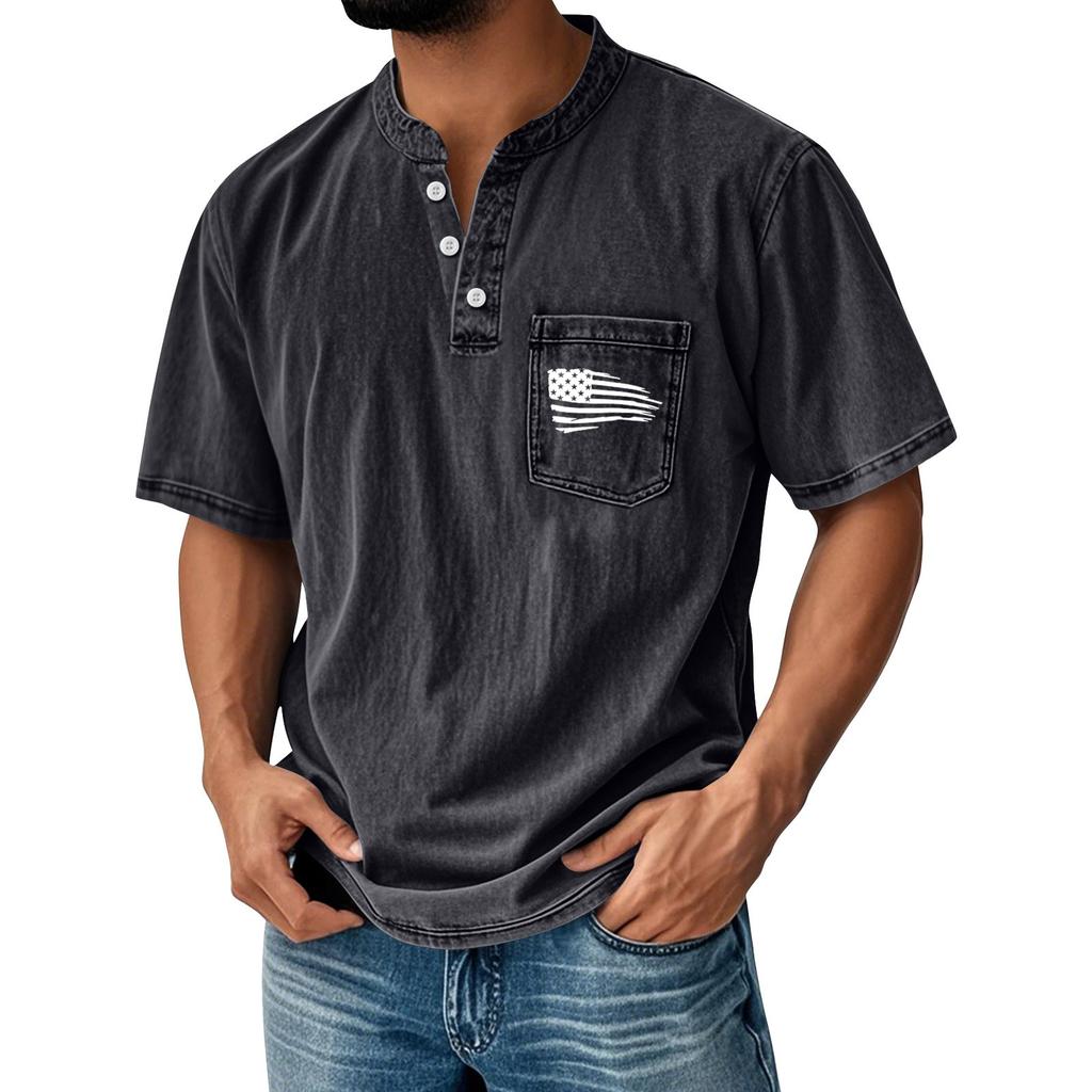 Мужская летняя футболка с круглым вырезом и коротким рукавом, универсальная повседневная рубашка на пуговицах