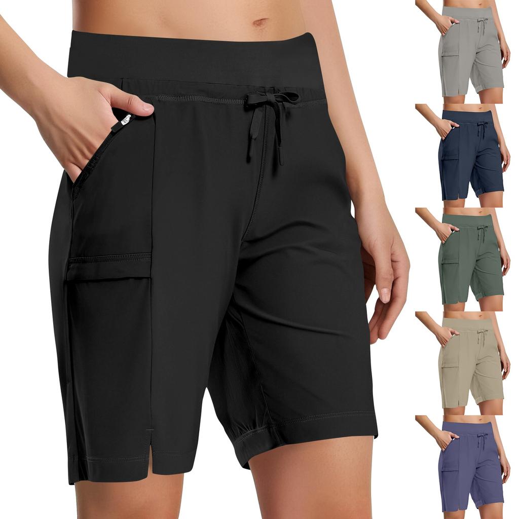 Описывать: Женские шорты-карго для походов, эластичные спортивные шорты (С карманами)