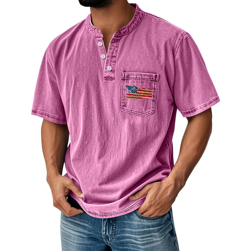 Мужская летняя футболка с круглым вырезом и коротким рукавом с узором ко Дню независимости, мужская повседневная рубашка на пуговицах на все случаи жизни