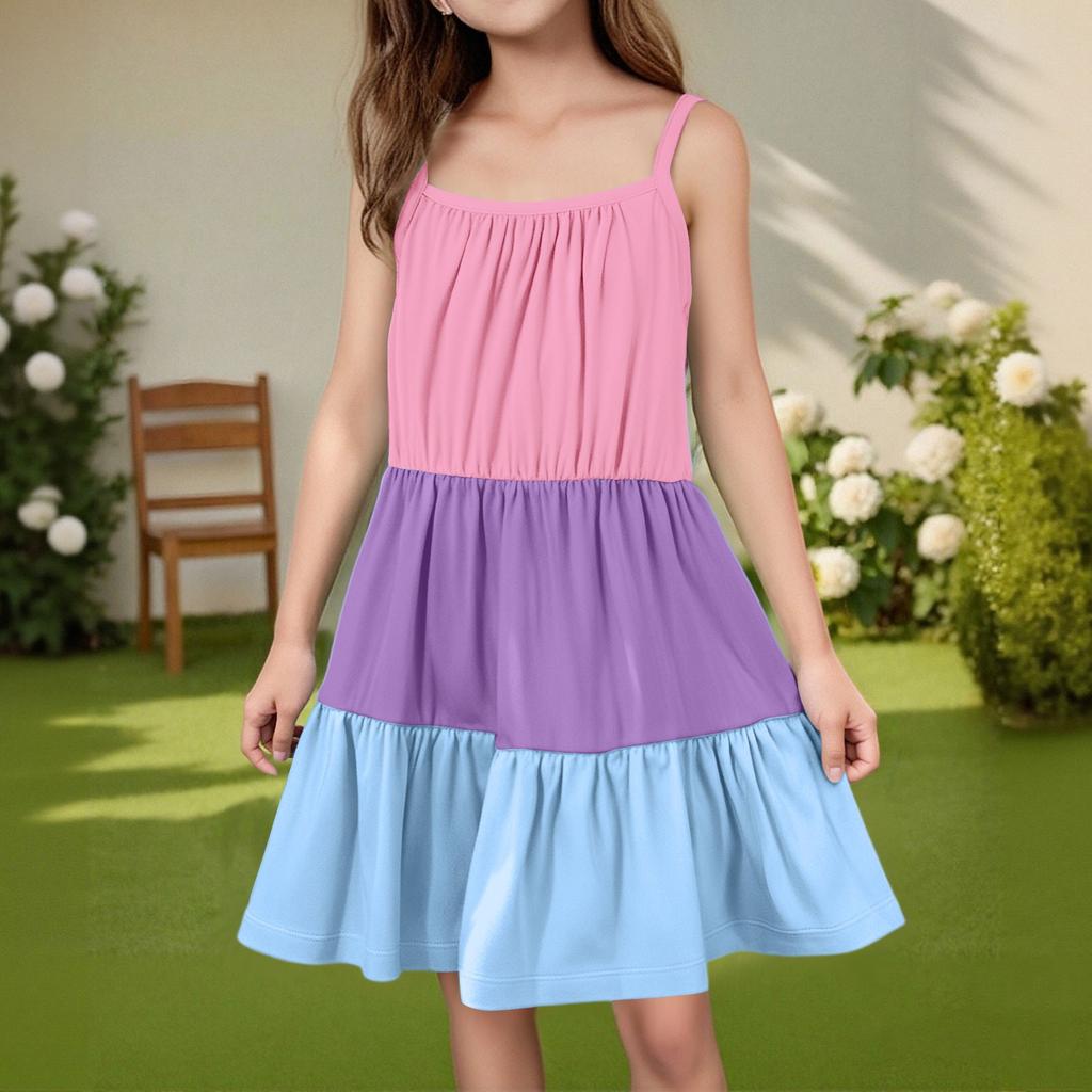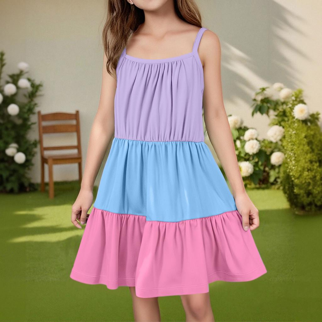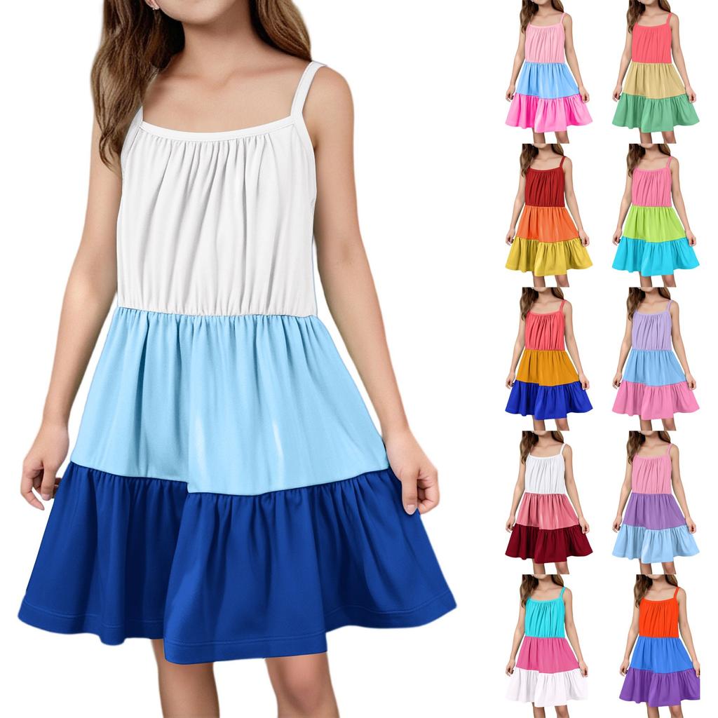 Детское летнее повседневное модное платье с круглым вырезом, однотонное, без рукавов