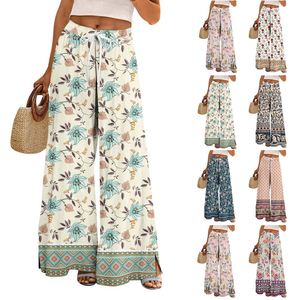 Женские летние брюки-палаццо в стиле бохо с высокой талией, широкие повседневные брюки с цветочным принтом и карманами — купить товар онлайн с бесплатной доставкой по всему миру!