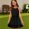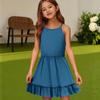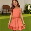 Детское летнее повседневное модное платье с круглым вырезом, однотонное, без рукавов