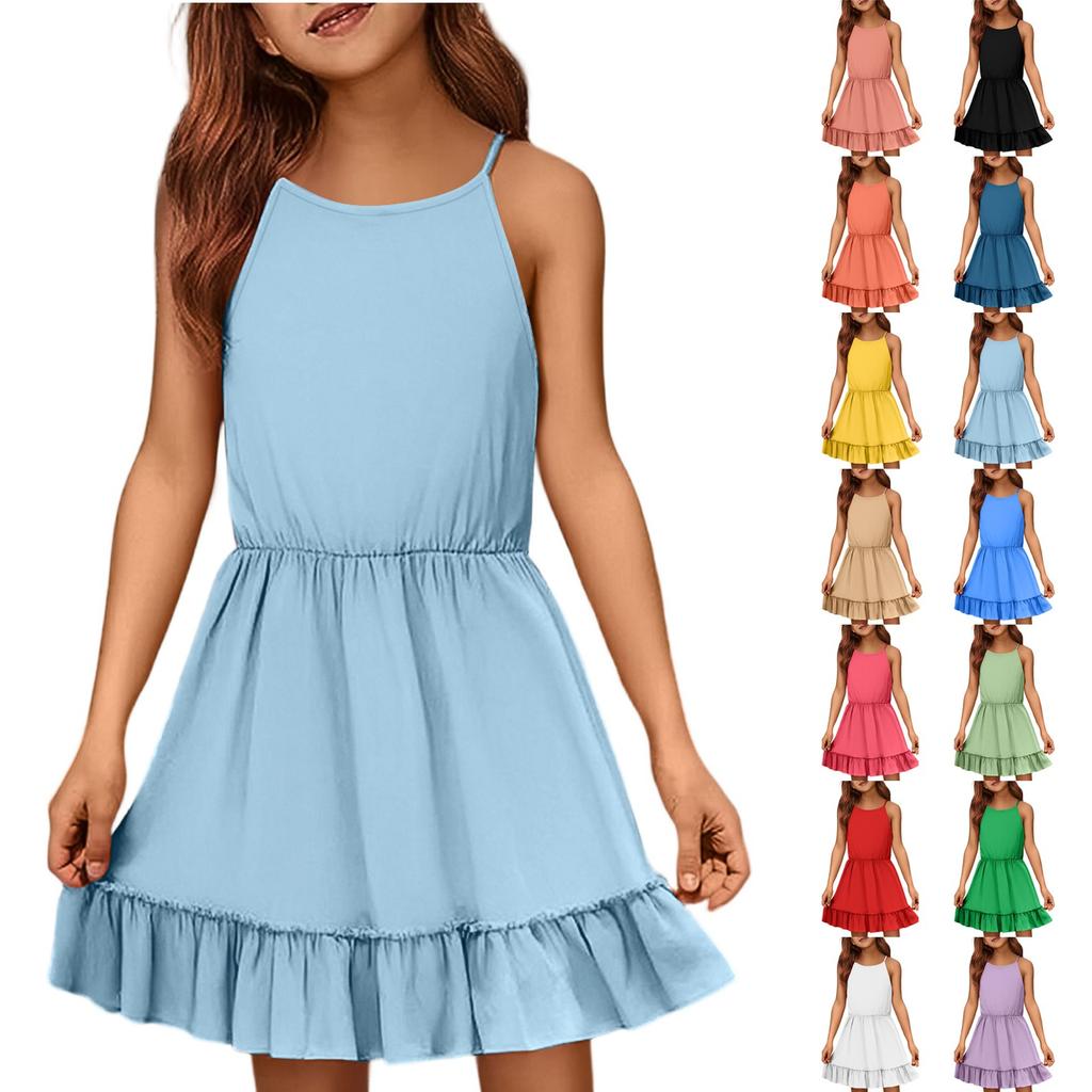 Детское летнее повседневное модное платье с круглым вырезом, однотонное, без рукавов — купить товар онлайн с бесплатной доставкой по всему миру!