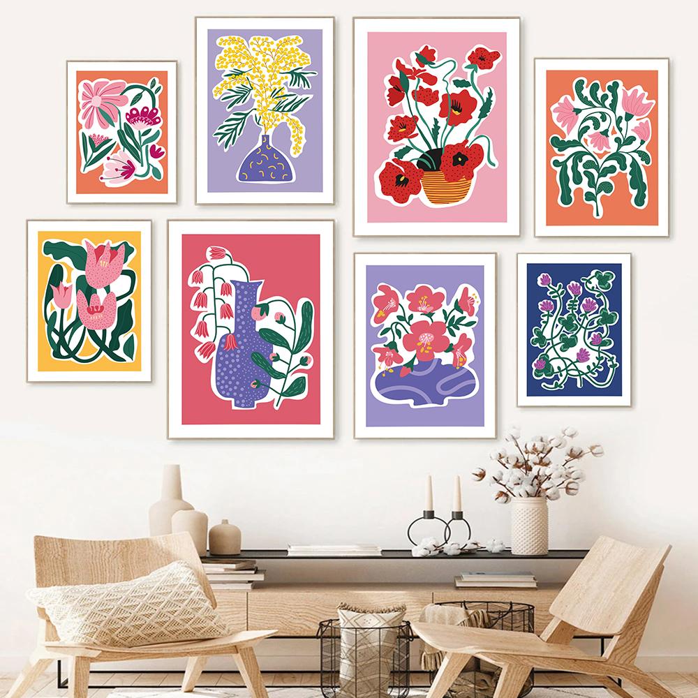 Постер с цветами Холст Живопись Абстрактное искусство Принт Цветочный рынок Скандинавский стиль Настенное искусство Картина для гостиной Домашнее украшение