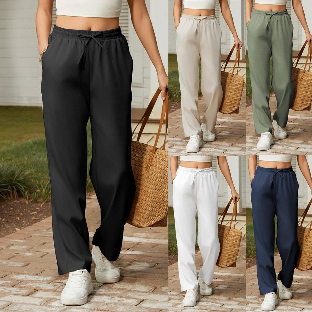 Женские брюки с завязками на талии, эластичные, с высокой талией, повседневные брюки для тренировок
