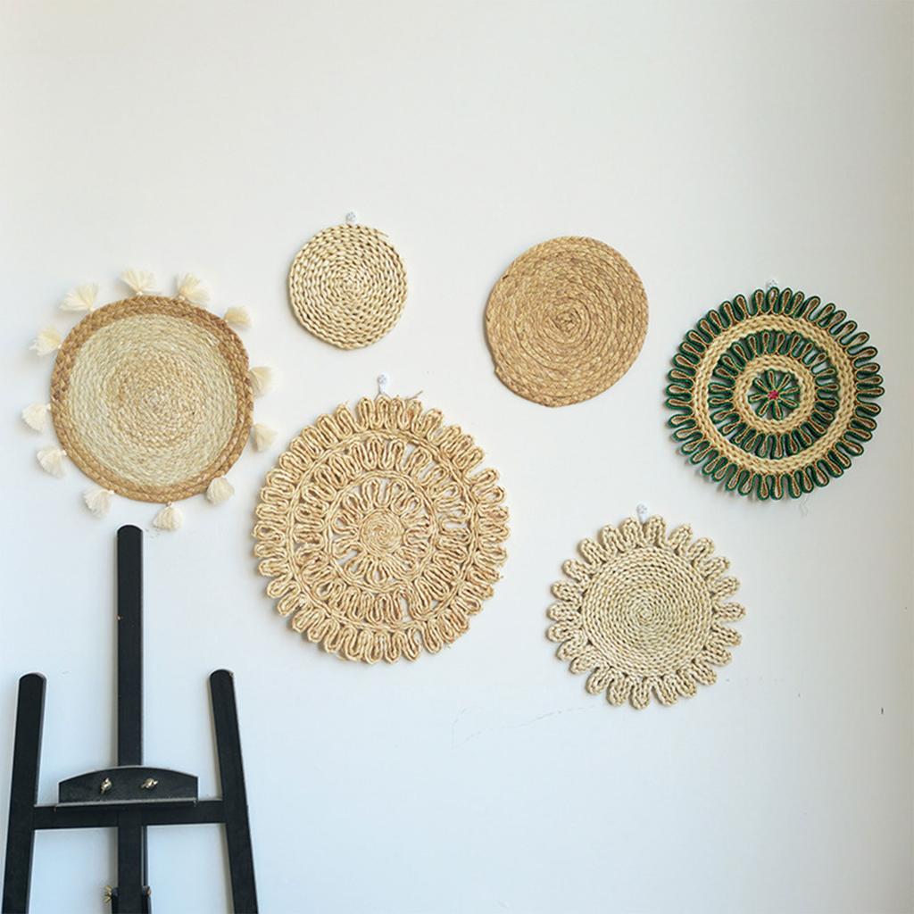 Винтажные настенные украшения из травы Красивые плетеные настенные украшения Ручной работы Круглые подвески-орнаменты из плетеной травы