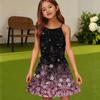 Детское летнее повседневное модное платье с круглым вырезом, однотонное, без рукавов