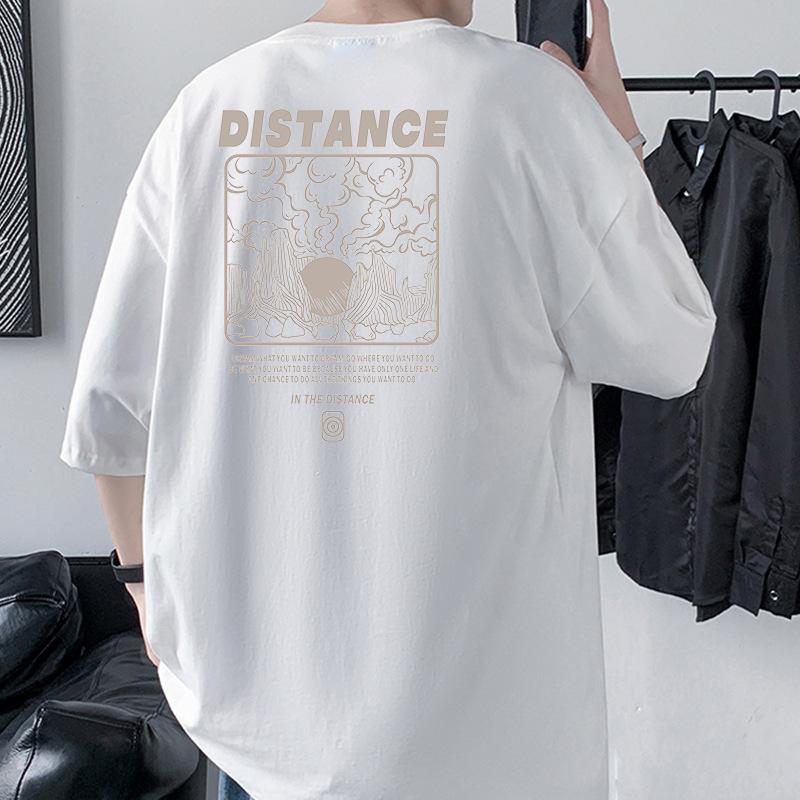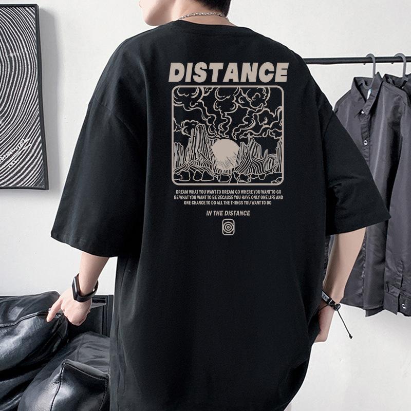 Мужская футболка оверсайз с заниженной линией плеча и принтом «Расстояние» из 100% хлопка, уличная одежда