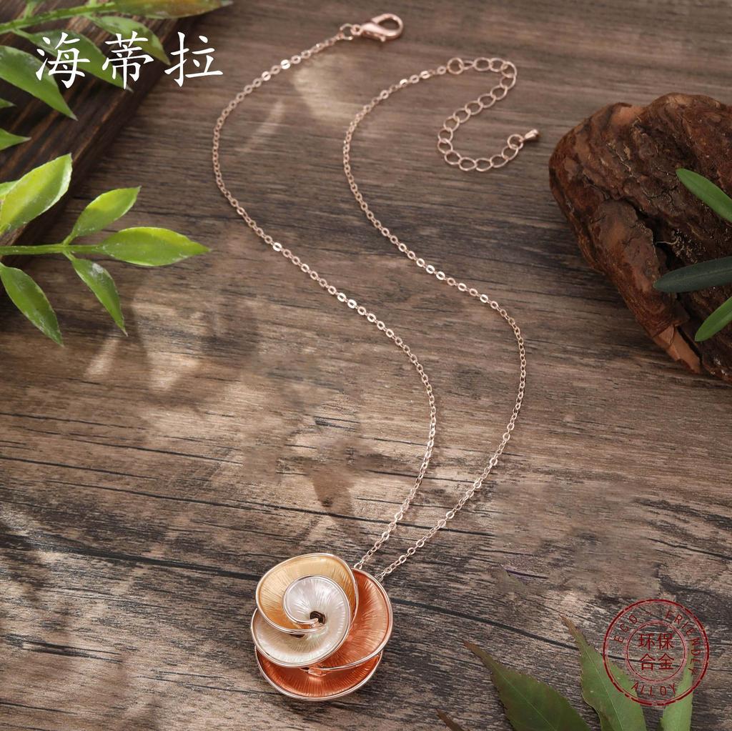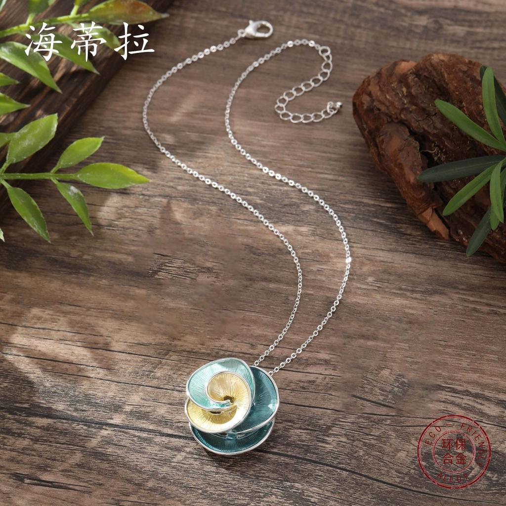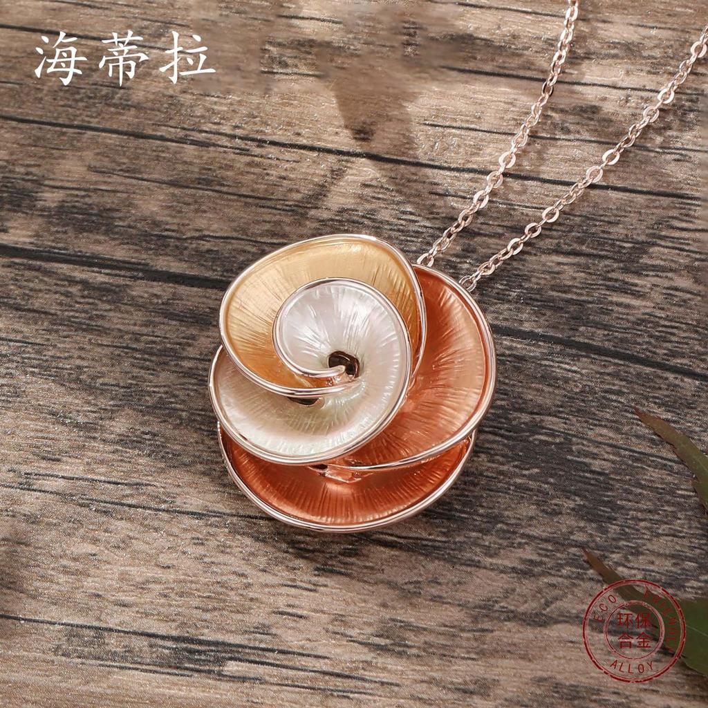 Цветная живопись маслом, гравированный кулон в виде цветка камелии и розы, модная и простая женская универсальная цветочная сплавная шейная цепочка