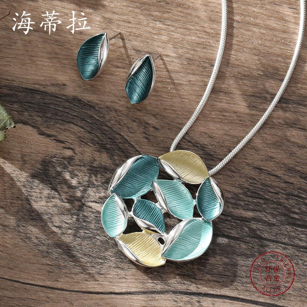 Новый цветной масляный круглый полый лепесток серьги-пусеты подвеска набор лето универсальный женский лепестковый кулон