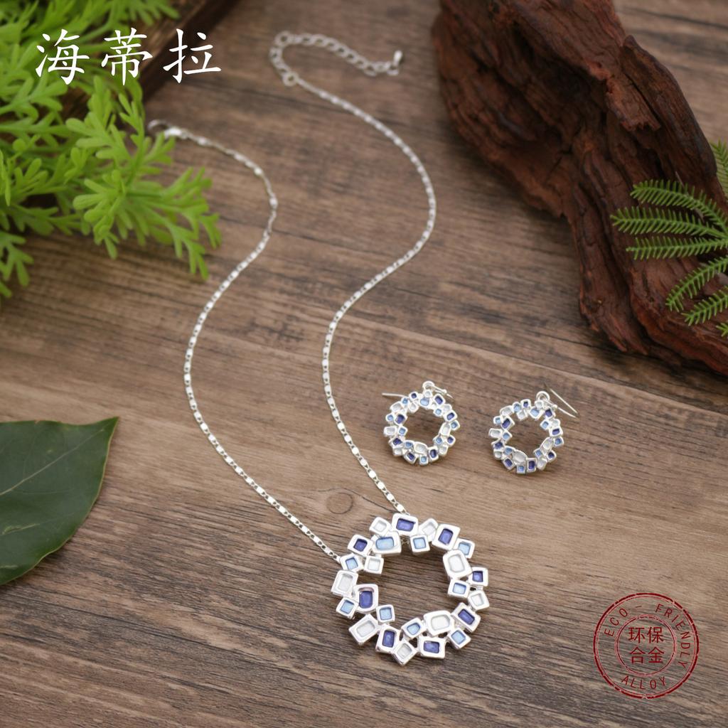 Новый эмалированный геометрический полый кольцевой набор серег-подвесок, женское универсальное преувеличенное геометрическое ожерелье