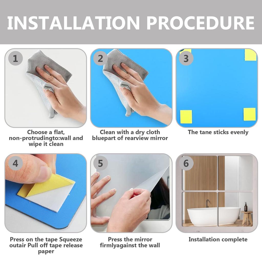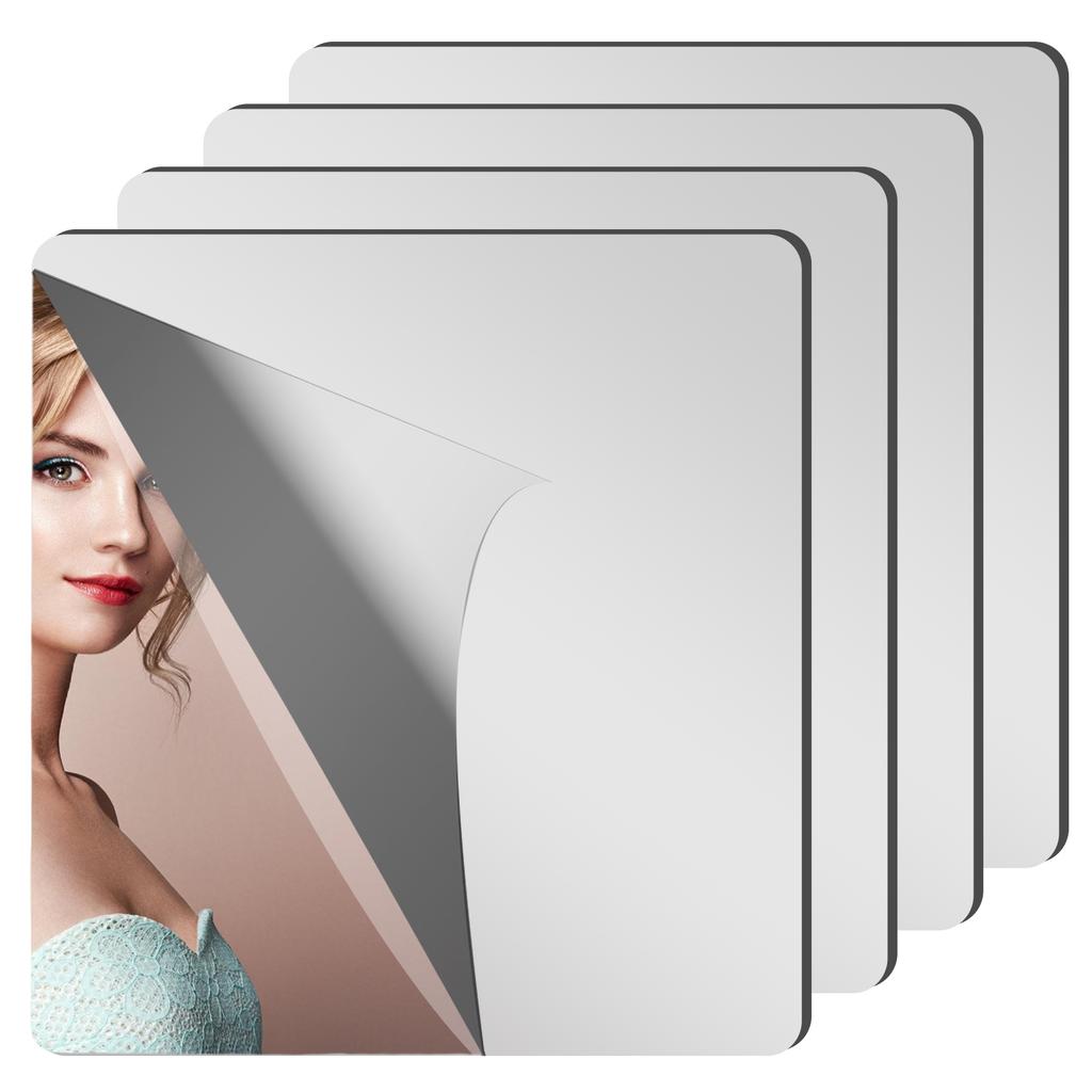 Набор из 4 самоклеящихся акриловых зеркальных плиток Сделай сам Настенное зеркало для ванной комнаты Декоративное зеркало Легкая установка Декоры
