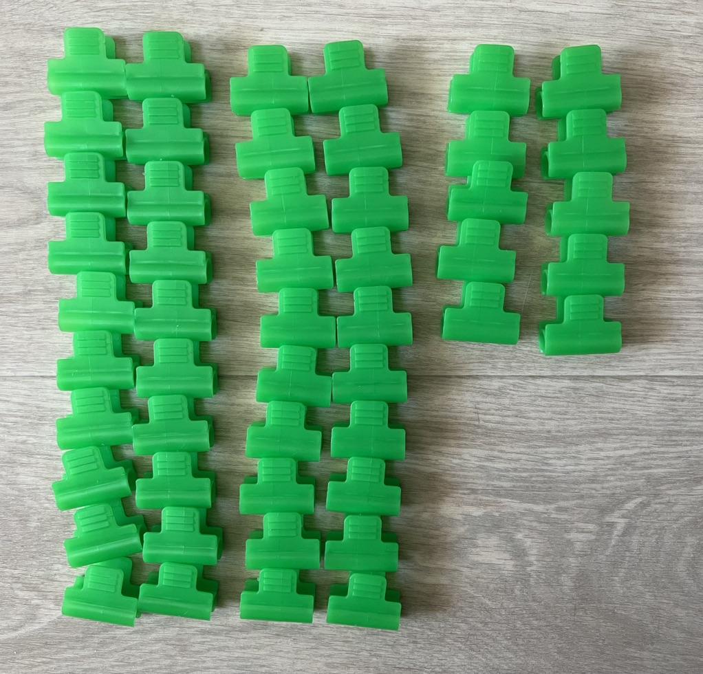 Все зажимы целые. Продавец заботливо упаковал в тонкий поролон и в два пакета. Зажимы маленькие, даже не знаю, подойдут ли на наши дуги. Ровно 50 штук. Тугие.