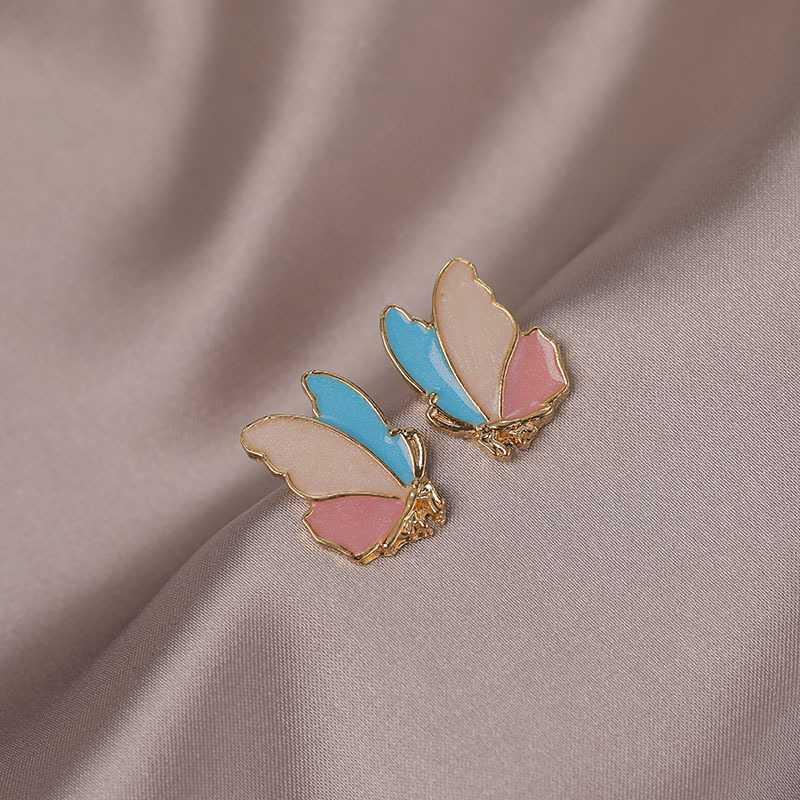 Цветные серьги-пусеты с бабочками женские маленькие и простые летние универсальные милые серьги с капельной эмалью и иглой из стерлингового серебра S925, свежие серьги
