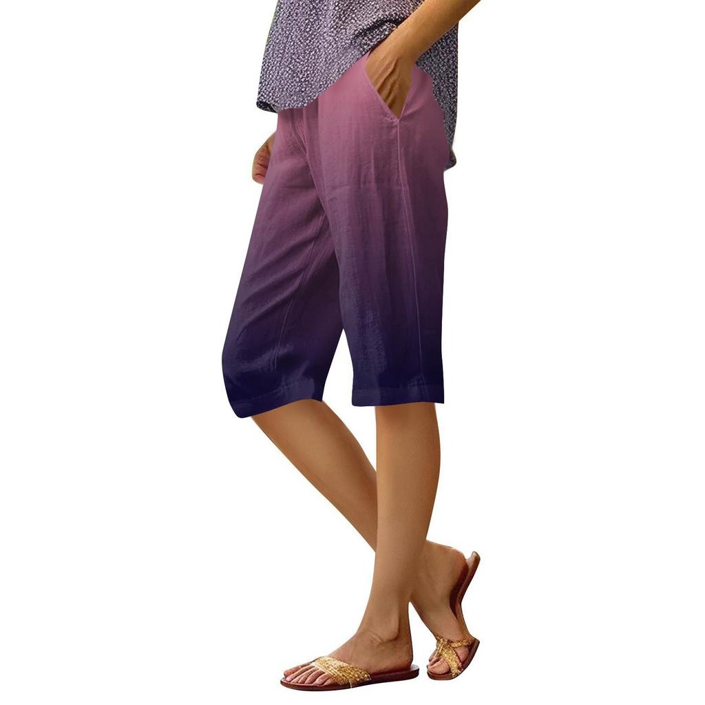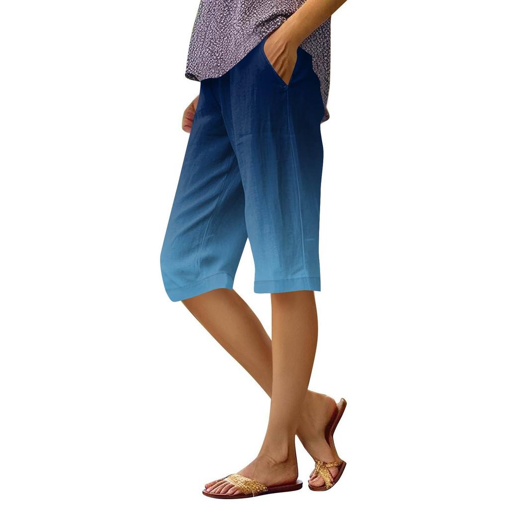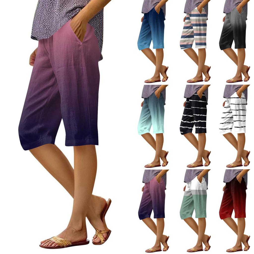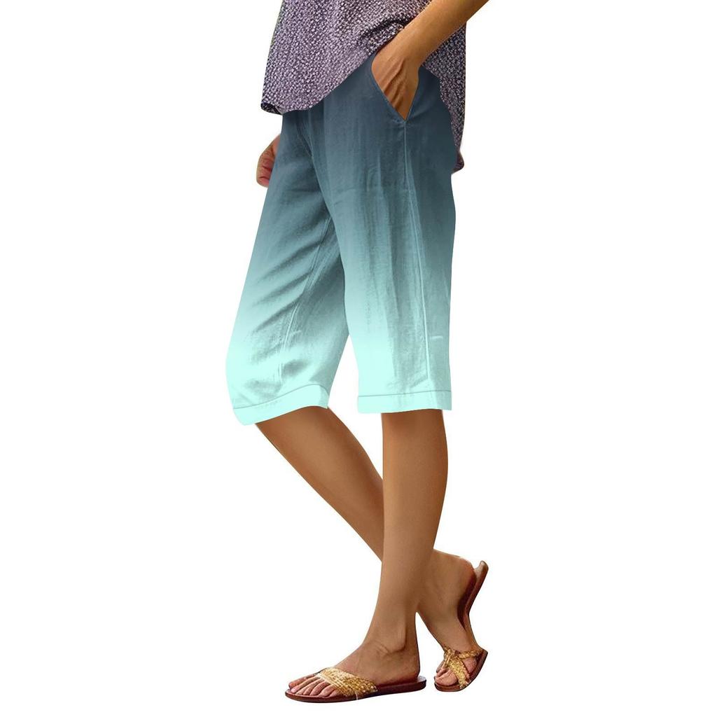 Женские брюки с принтом, модные повседневные шорты с карманами и эластичной резинкой на талии