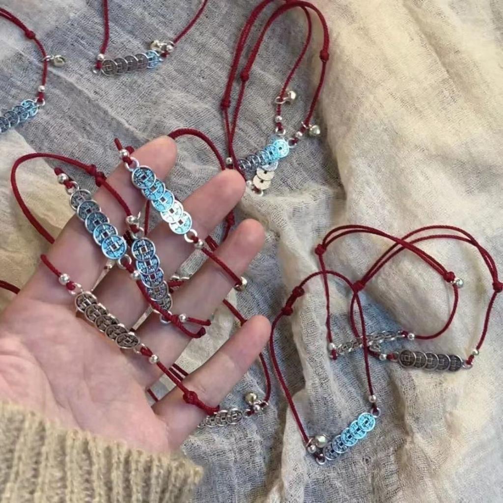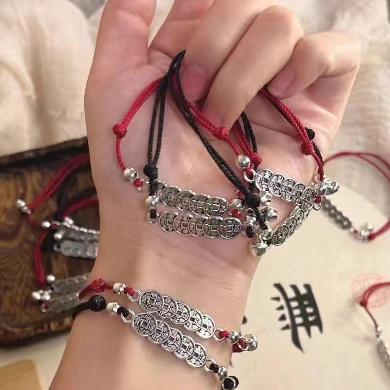 Браслет-колокольчик для перевалки с маленькой красной веревкой высокой ценности, регулируемый, в китайском стиле, плетение для пары на год рождения