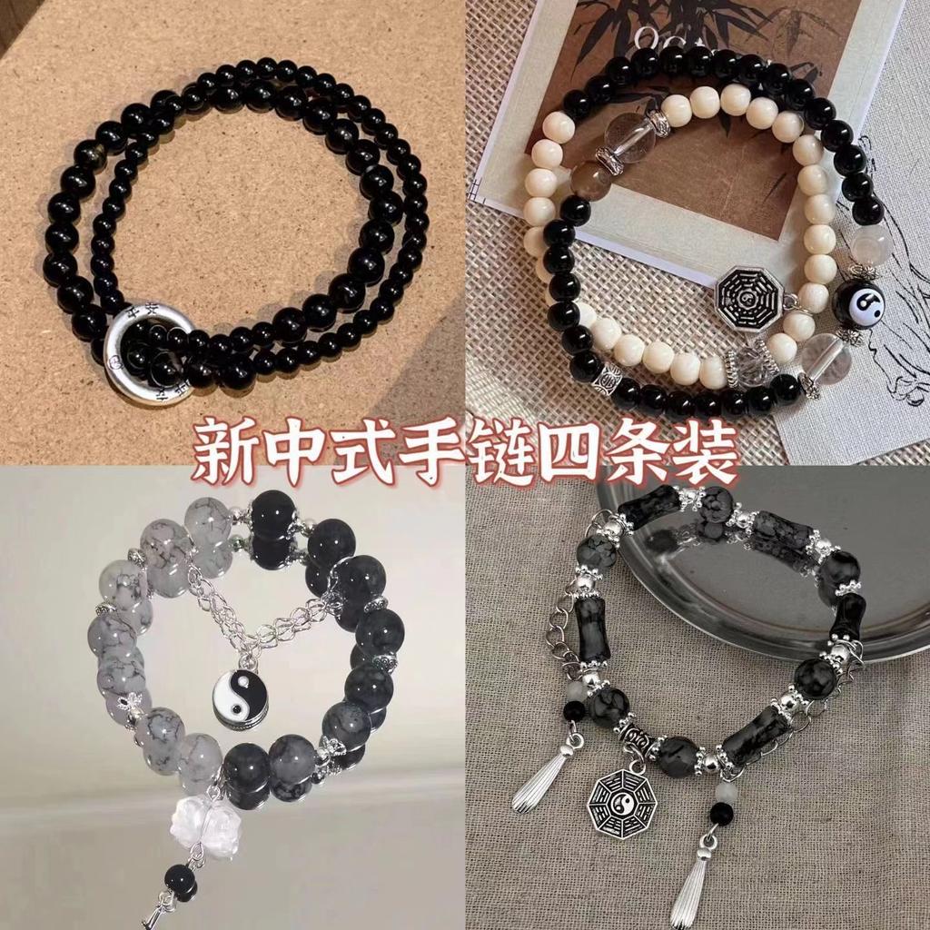 Нишевый оригинальный дизайн браслет Тайцзи Инь-Ян женский новый китайский стиль черный бисерный чернильный браслет для мальчиков парный
