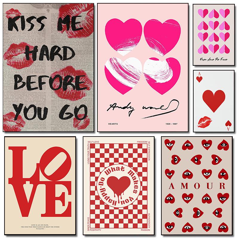 День святого Валентина Розовый Красный Любовь Популярная Мода Ретро Постеры Принты Холст Живопись Настенное Искусство Картина Гостиная Домашний Декор
