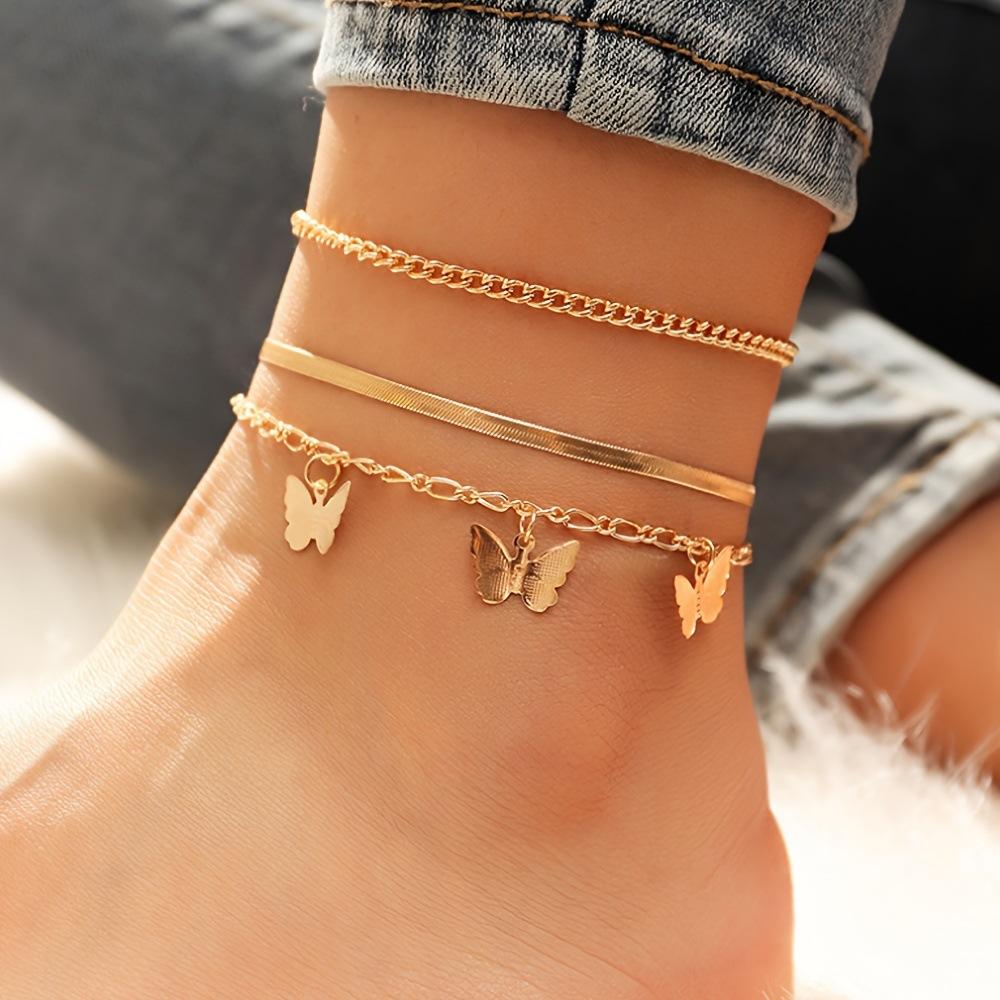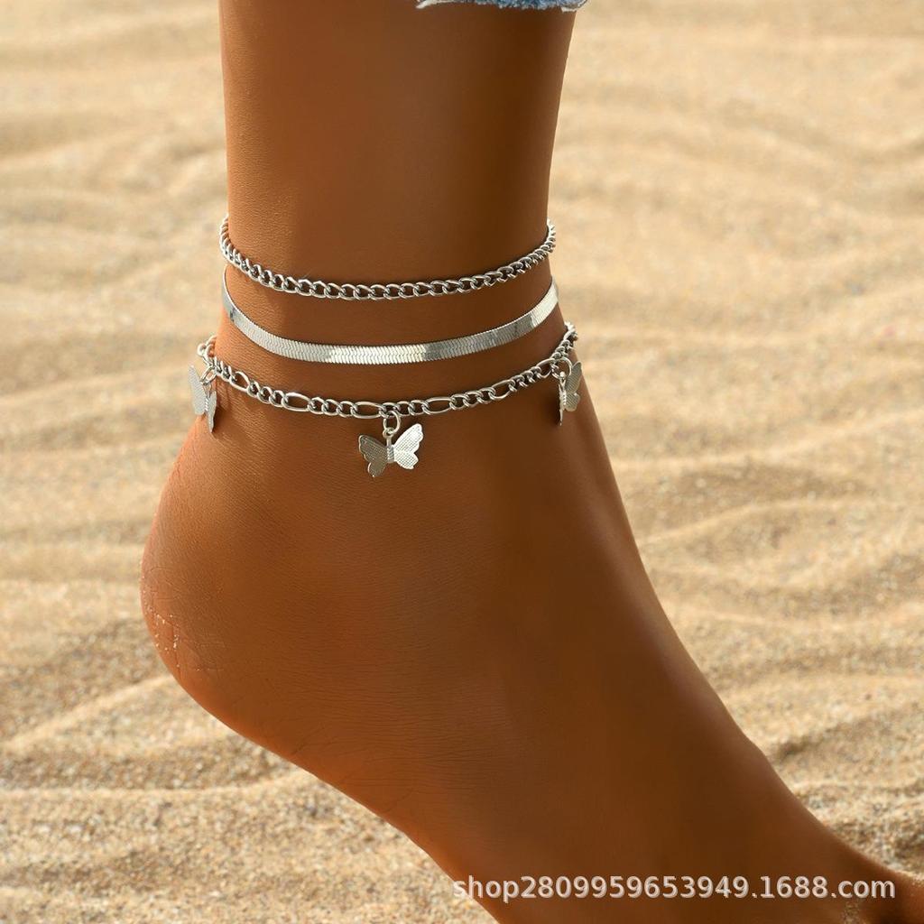 Летняя мода Аксессуары для ног Цепочка «змеиная кость» Подвеска-бабочка Цепочка на ногу Многослойная цепочка на ногу Женская 2470