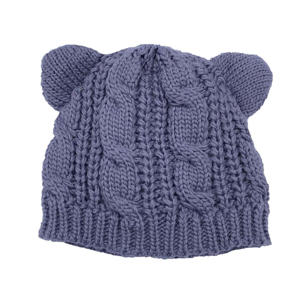 Женские вязаные зимние унисекс толстые вязаные теплые шапки с кошачьими ушками