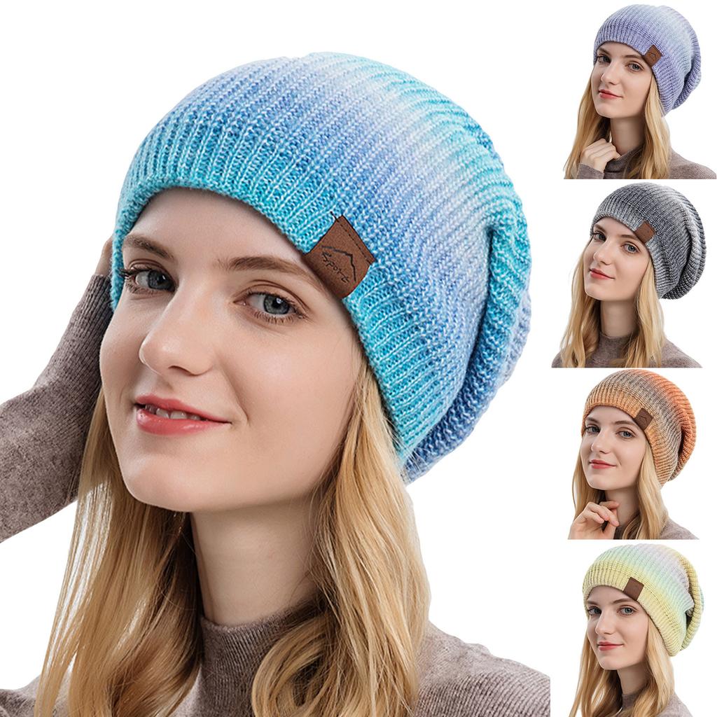 И Зимняя Вязаная Шапка Градиент Теплая Шапка Модная Шерстяная Шапка