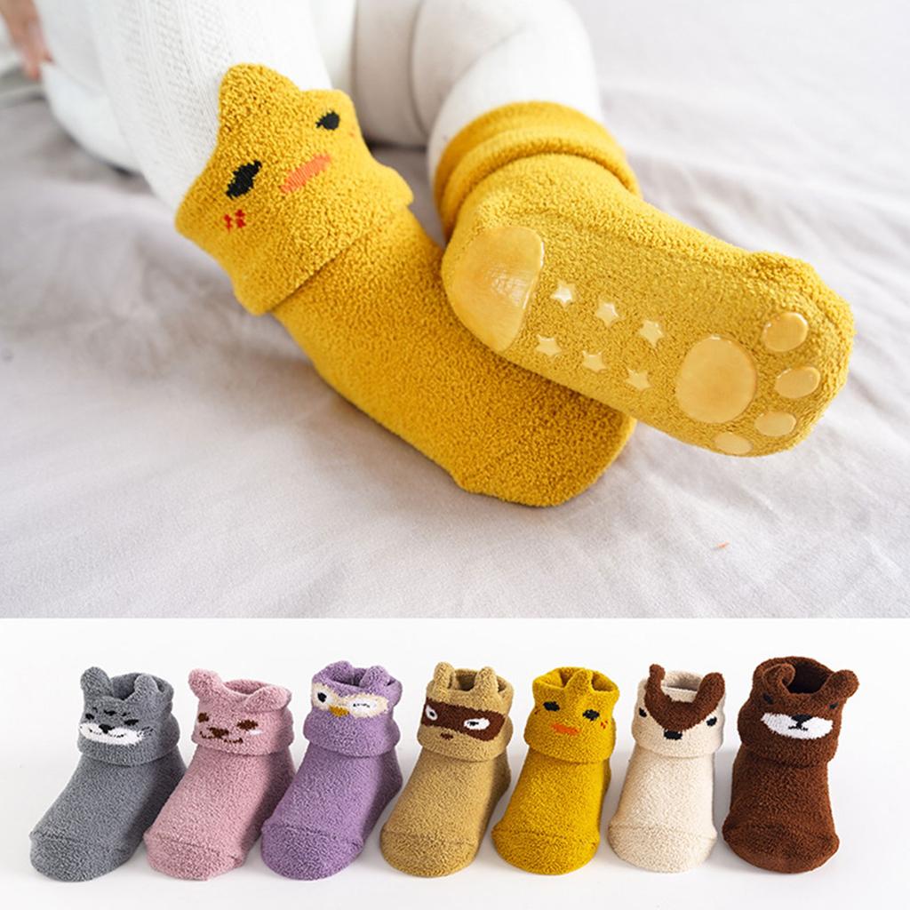Детские противоскользящие носки-тапочки, милые хлопковые теплые носки с героями мультфильмов, носки-тапочки для малышей