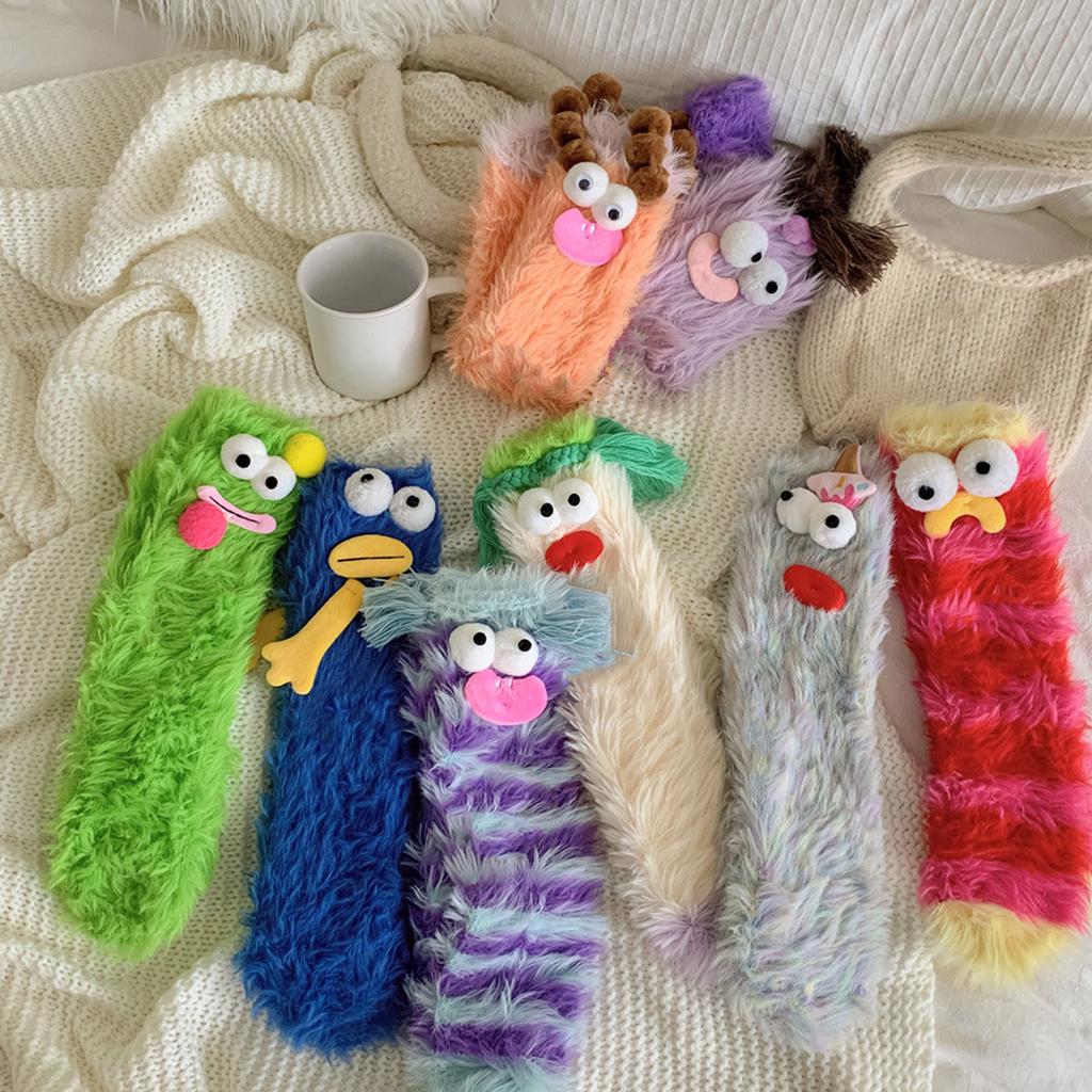 Теплые уютные пухлые носки с героями мультфильмов, забавные пушистые носки, зимние мягкие носки для сна, плюшевые носки с героями мультфильмов для девочек и женщин - один размер