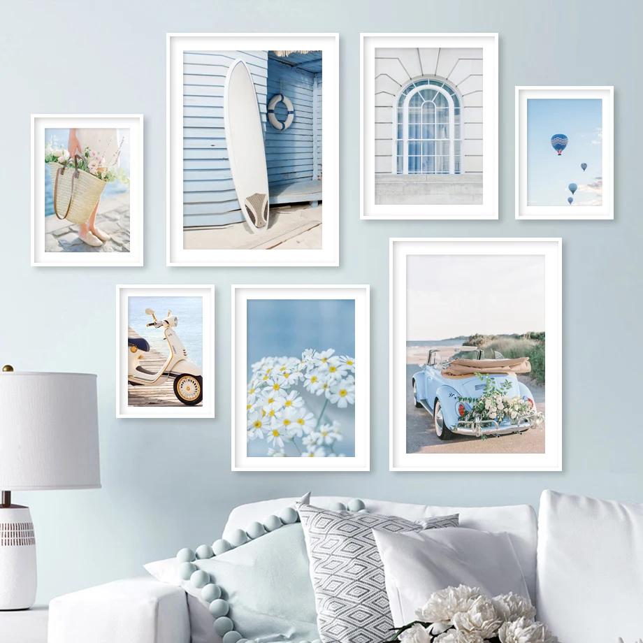 Холст Живопись Ретро Автомобиль Серфинговые доски Мотоциклы Воздушные шары Цветы Настенное искусство и Принт Настенные картины Гостиная Домашний декор