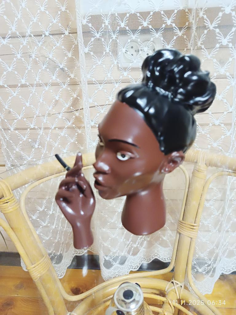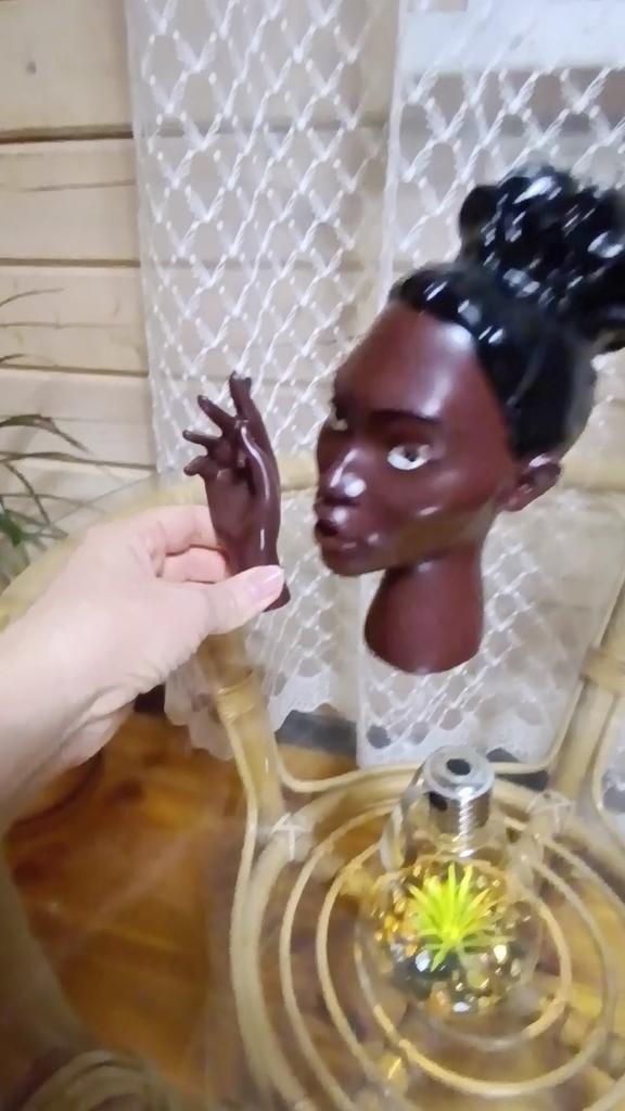 🧑Очень оригинальная штучка для интерьера- "Курящая негритянка" 🧑Предназначена для ароматических конусов 🧑Состоит из головы и кисти руки с сигаретой 🧑Сделана не поняла из чего, может керамика, но точно не пластик 🧑Тлеющий конус ставится на специальную подставку и она вставляется в ответстие в шее и задвигается 🧑Дым должен выходить из рта (там есть ответстие) 🧑Но видимо тяга плохая😄, дым выходит из шеи и немного изо рта 🧑И ещё есть недоработка, рука не стоит устойчиво, а падает, поэтому ей нужна подпорка в виде стены, ну или нужно поставить её вплотную к голове 🧑В целом композиция очень оригинальная 😊ЯпочтидовольнаЯ😊 🧑Наглядно показала и рассказала в видео