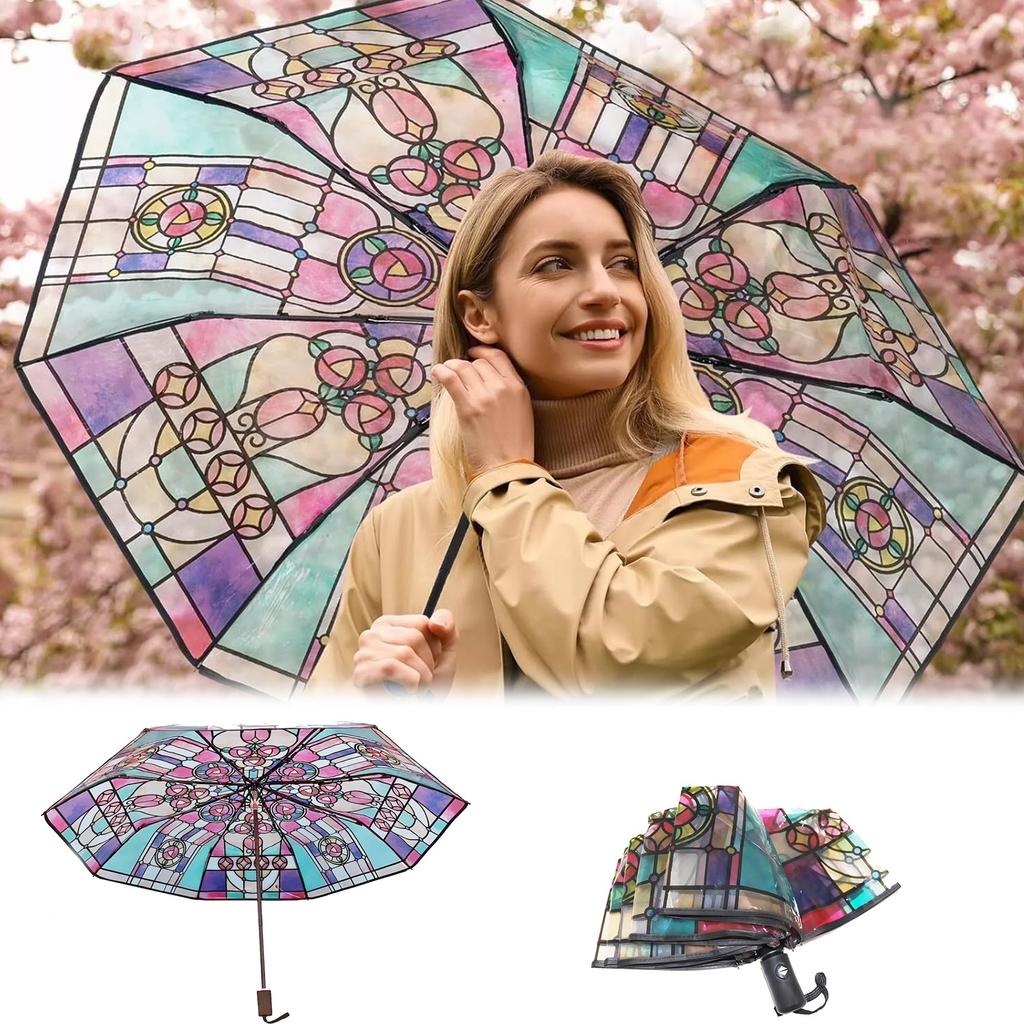 Зонт автоматический японский 23-дюймовый церковный стеклянный зонт прозрачный POE прямой шест длинная ручка солнечный зонт стеклянный красочный узор