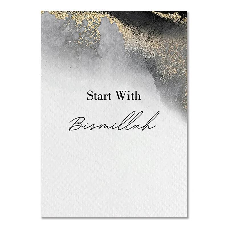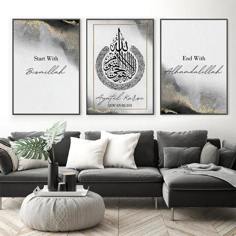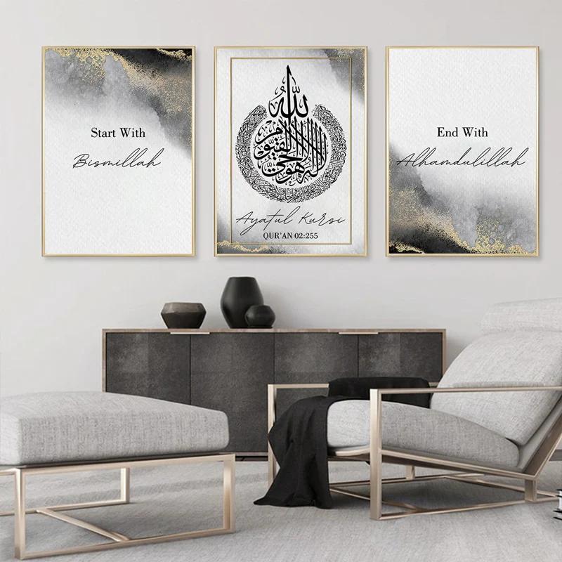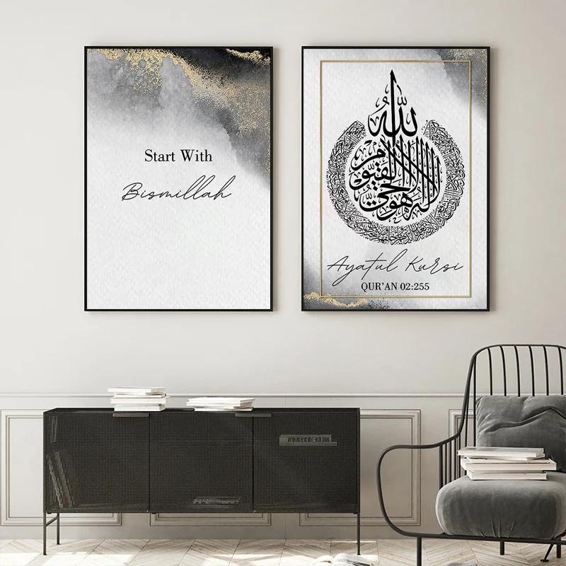 Исламская каллиграфия Аятул Курси Бисмилла золотые чернила плакат холст картина настенная живопись печать картина гостиная украшение дома