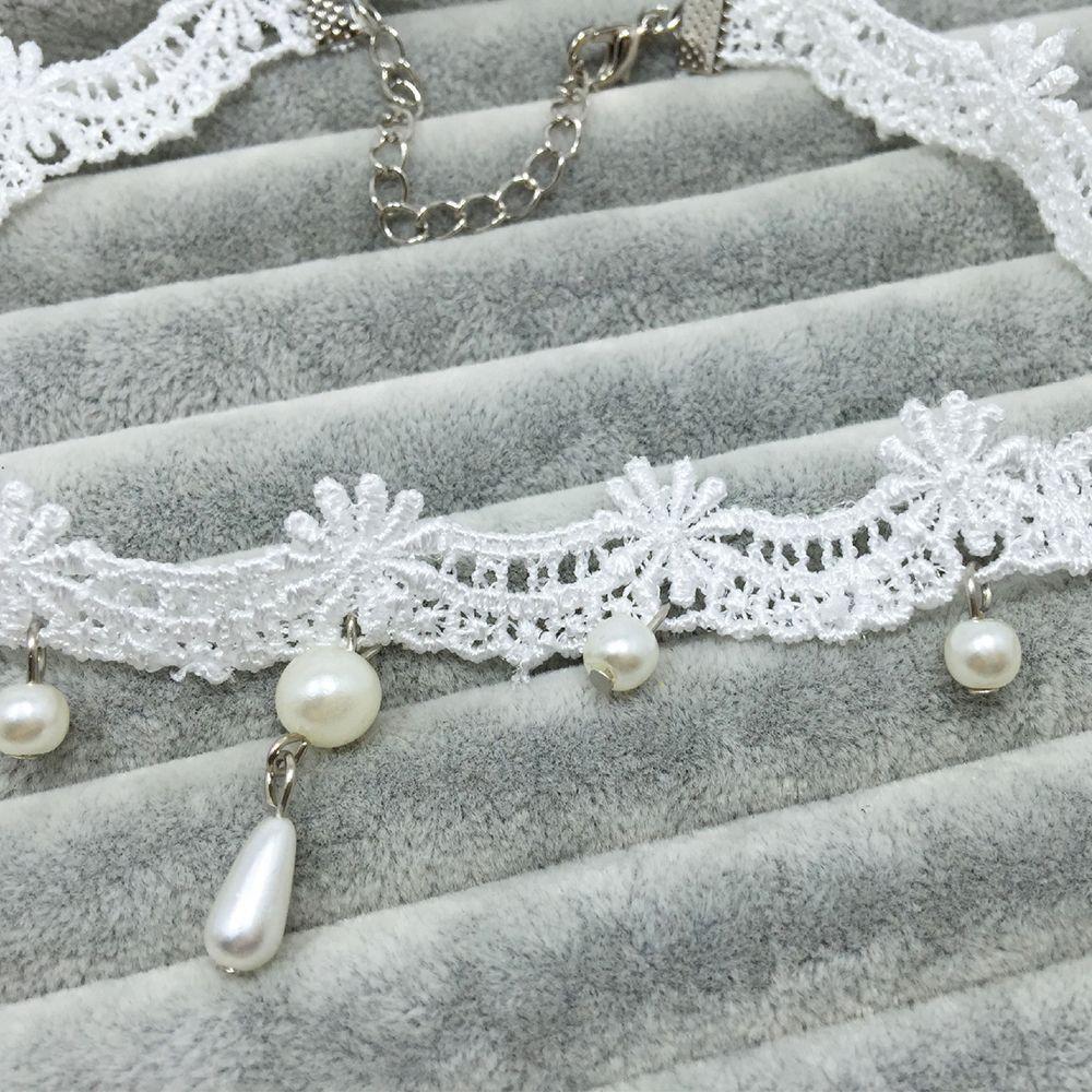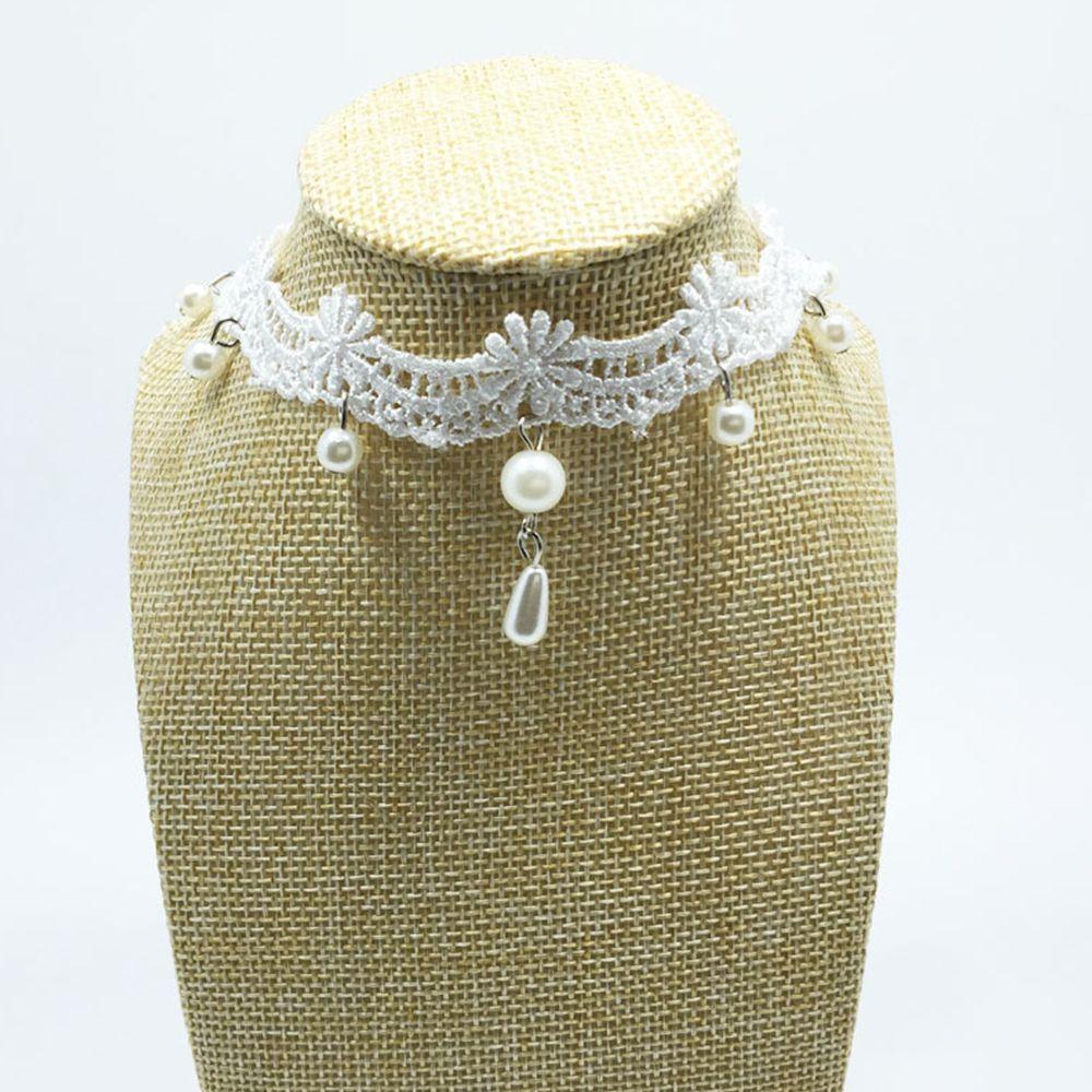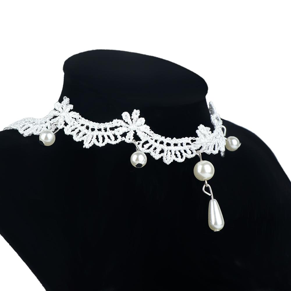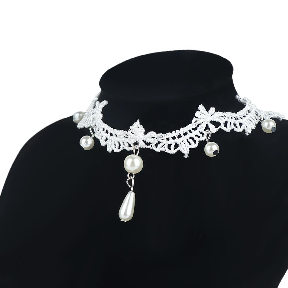 Gothic Women Lace Pendant Bride White Pearl Necklace Choker Collar