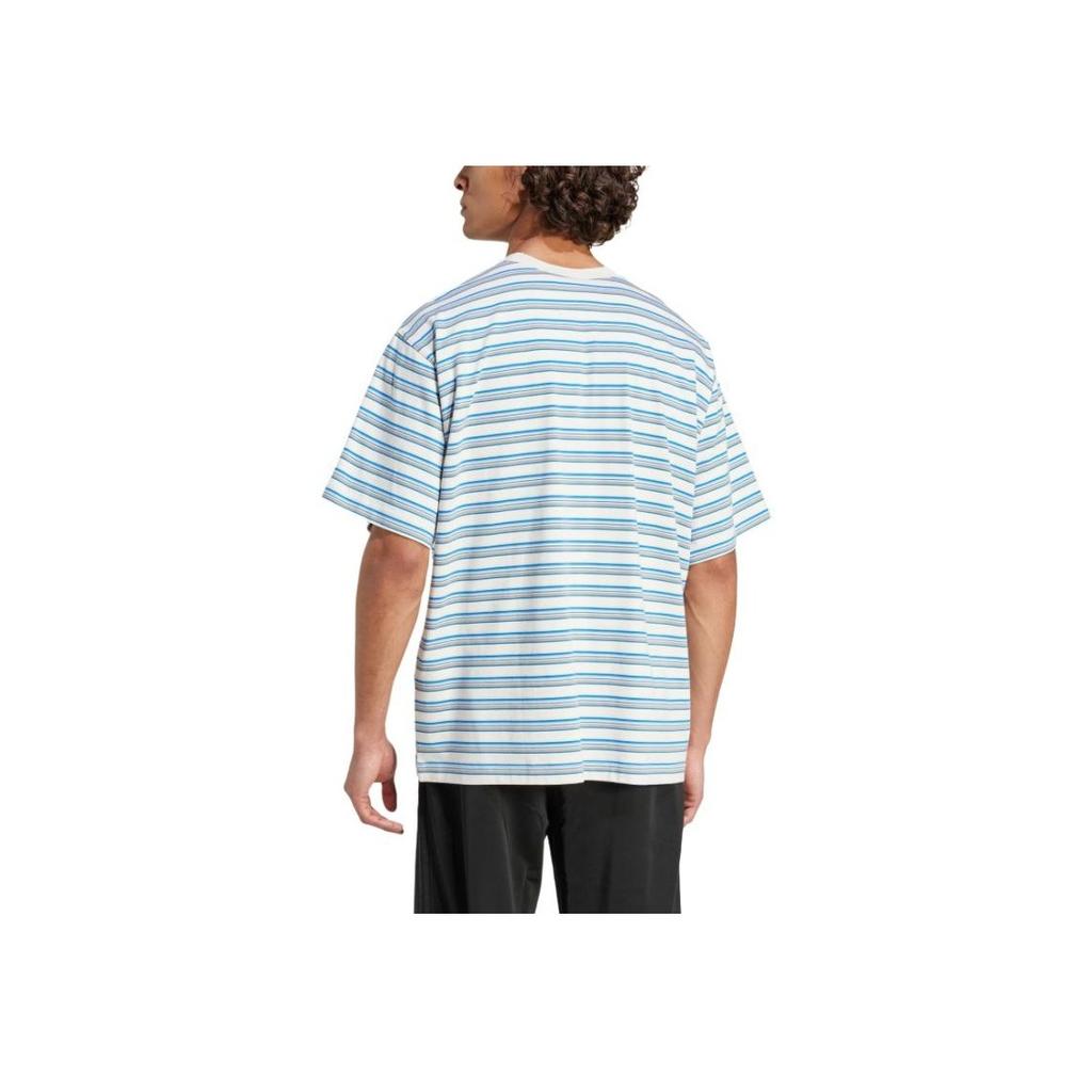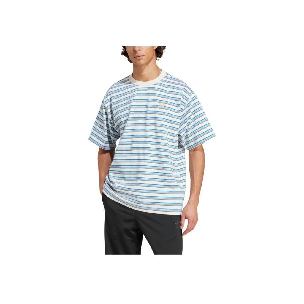 Adidas Оригинальная полосатая футболка Модная универсальная с круглым вырезом и коротким рукавом Мужские топы Белый Синий Светло-оранжевый KB8355