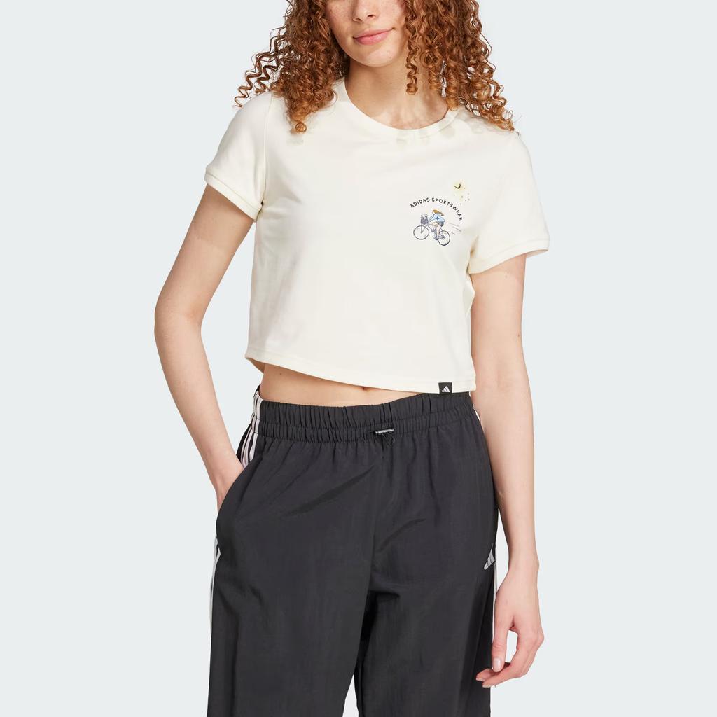 Adidas Спортивная одежда Коды Графический укороченный пуловер Дудл Простая повседневная футболка с коротким рукавом Женская футболка Han-Jade-White JX5327