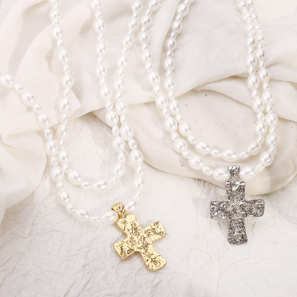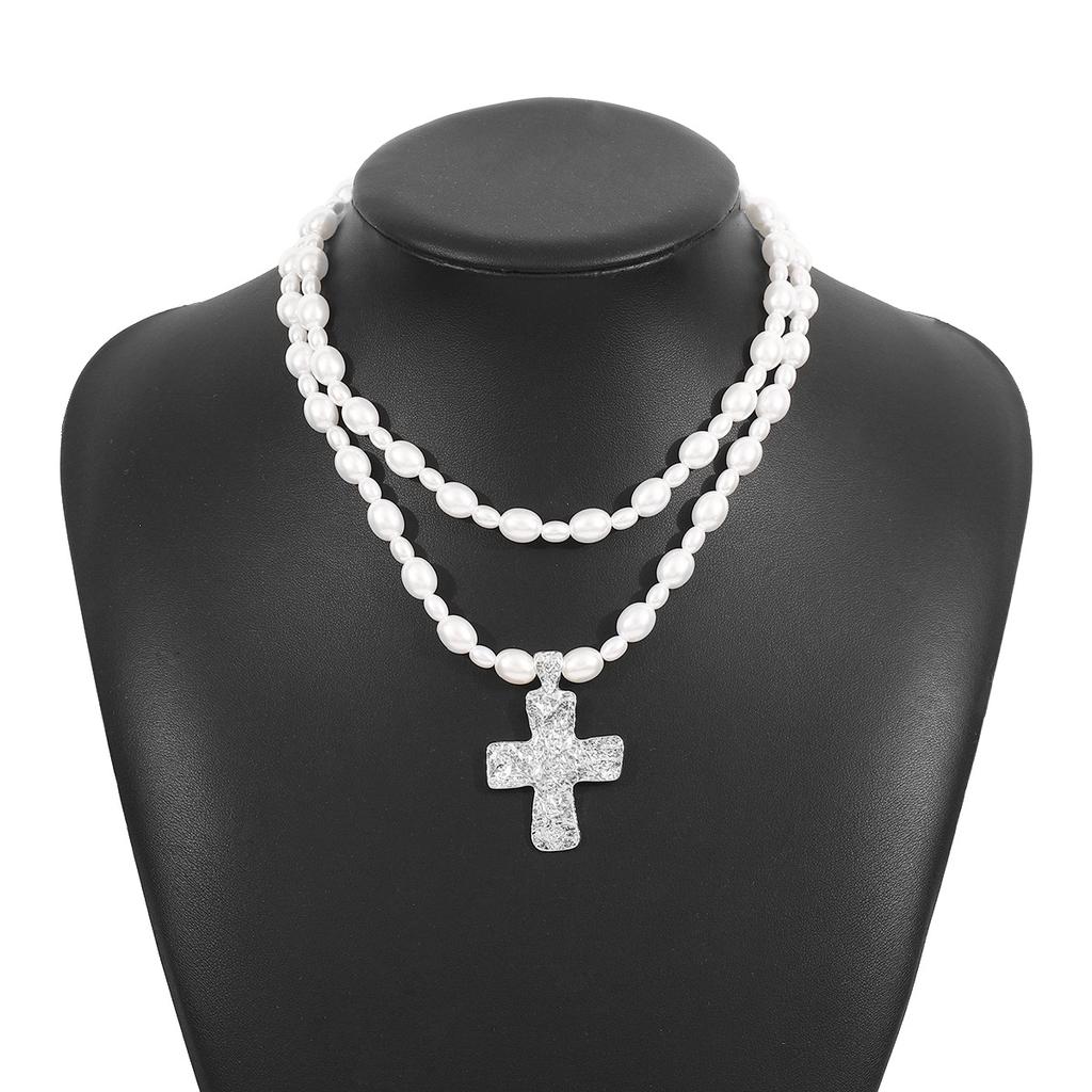 Tooxika Кулон-распятие Ожерелье Французский винтаж Жемчуг Двухслойная цепочка-колье
