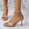 Крутые тапочки из одного слова с открытыми пальцами для женщин носить весной и летом новые абрикосовые сексуальные туфли на высоком каблуке-шпильке
