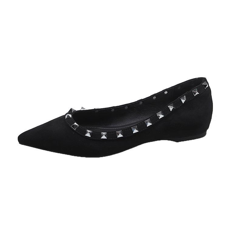 Весна и Осень новая маленькая заклепка остроносые балетки женские неглубокие туфли-лодочки туфли на одном ходу