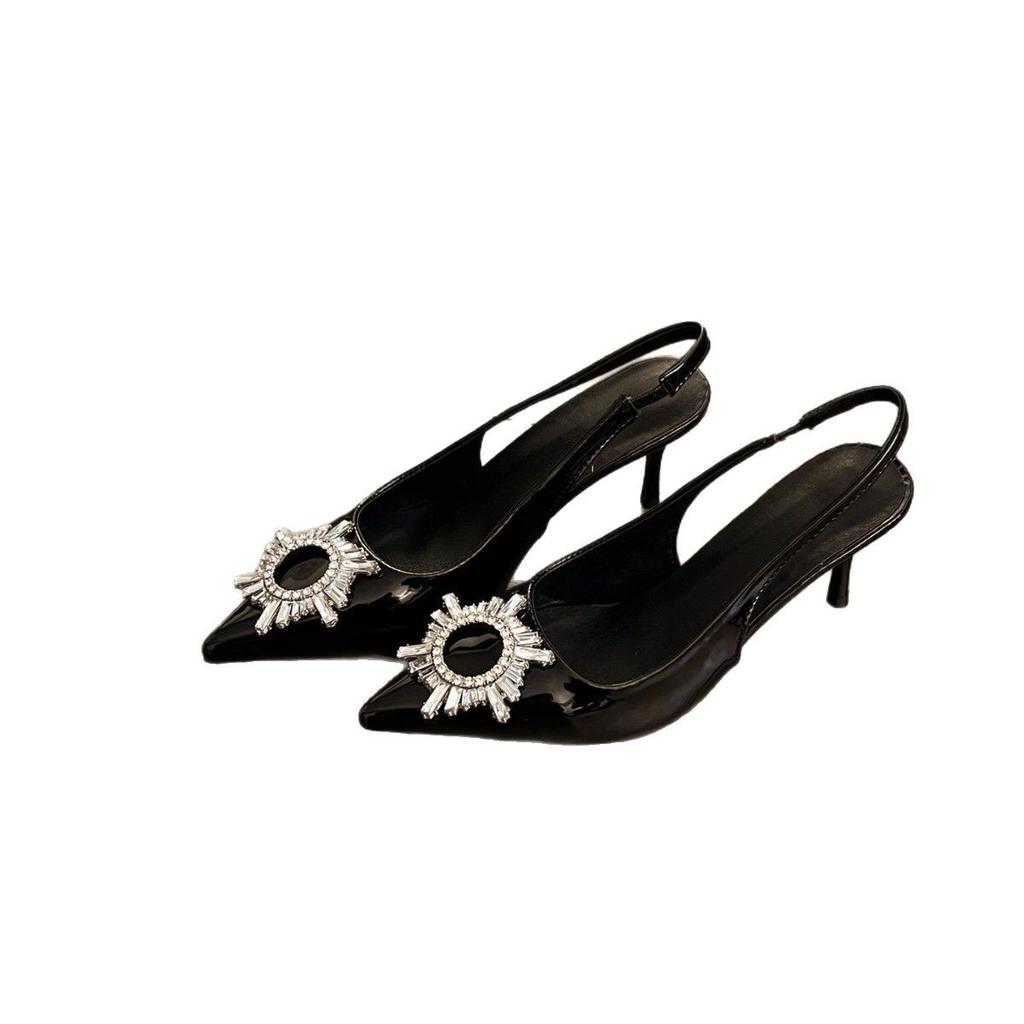 Весенне-летние модные босоножки на тонком каблуке с сумкой на носке, женские лакированные туфли-лодочки с острым носком и пряжкой со стразами, подчеркивающие темперамент