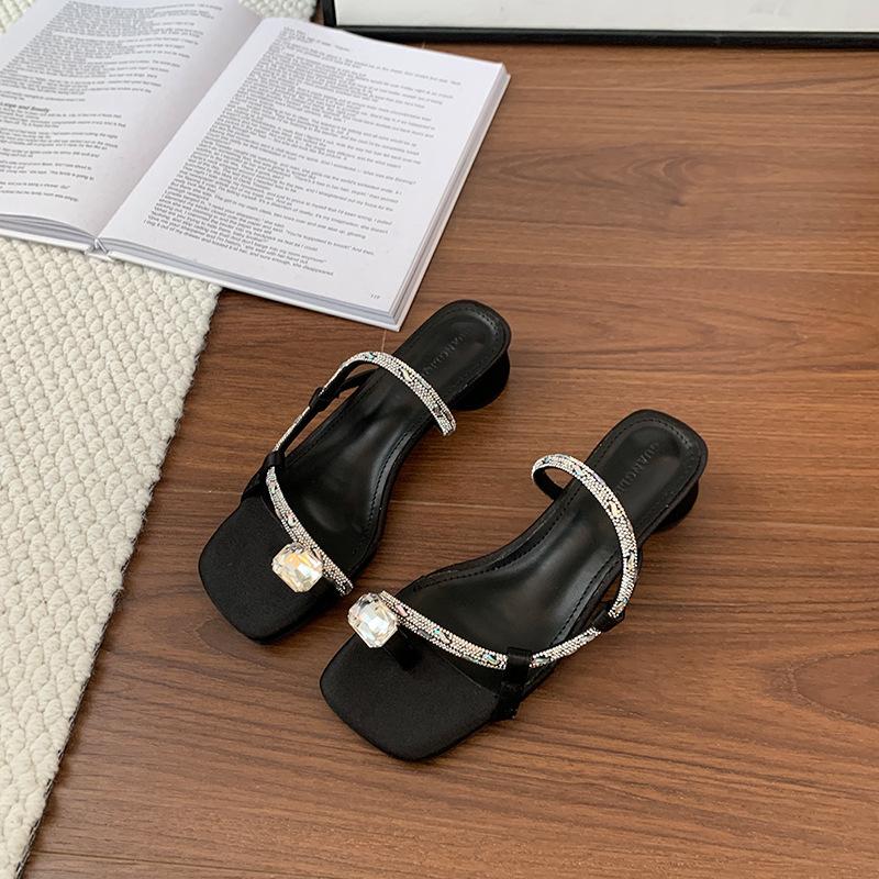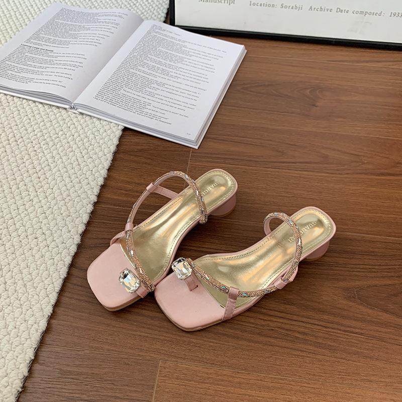 Coarse-heeled sandals for women's summer wear with skirts, rhinestones, high heels, and beautiful cool slippers.