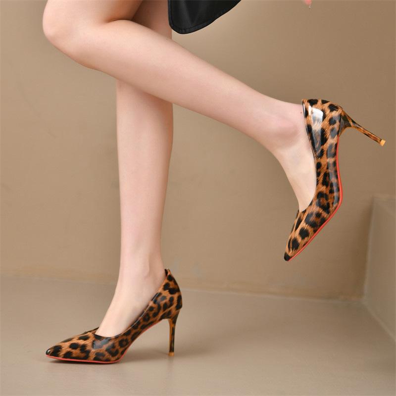 Остроносые сексуальные туфли на высоком каблуке с леопардовым принтом, женские, весенние, новые, с мелким вырезом, высококлассные туфли-стилет под юбку