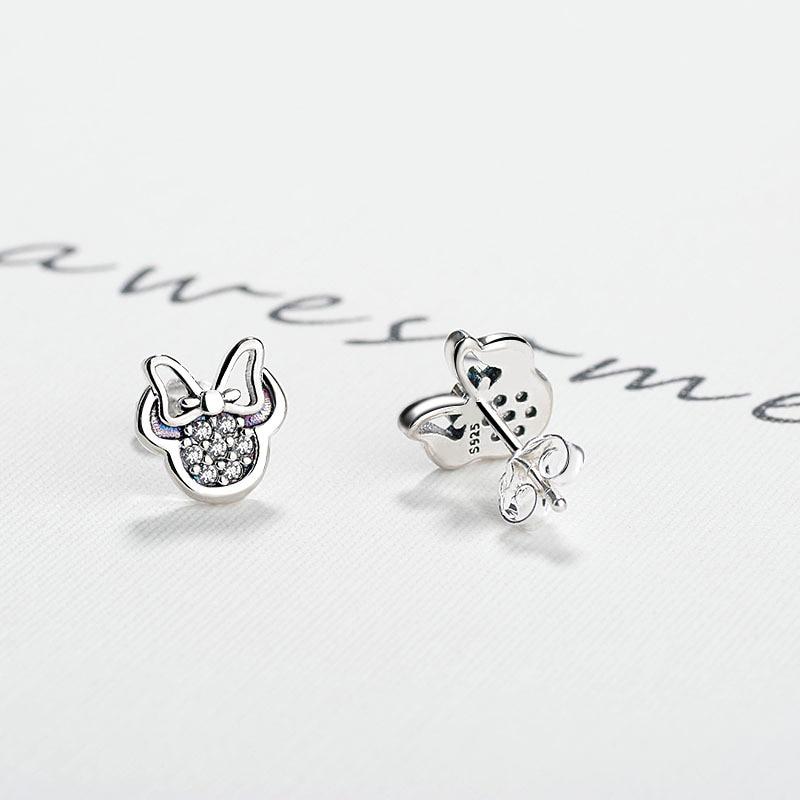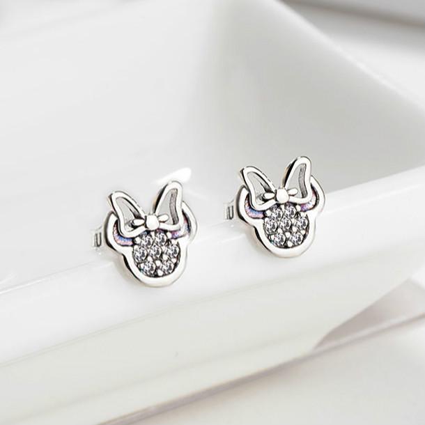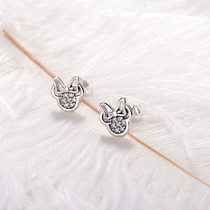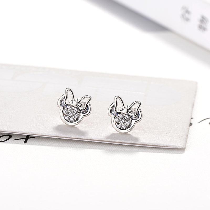 Модные серьги-гвоздики милой формы серебристого цвета для девочек, украшения, белые сверкающие серьги Минни