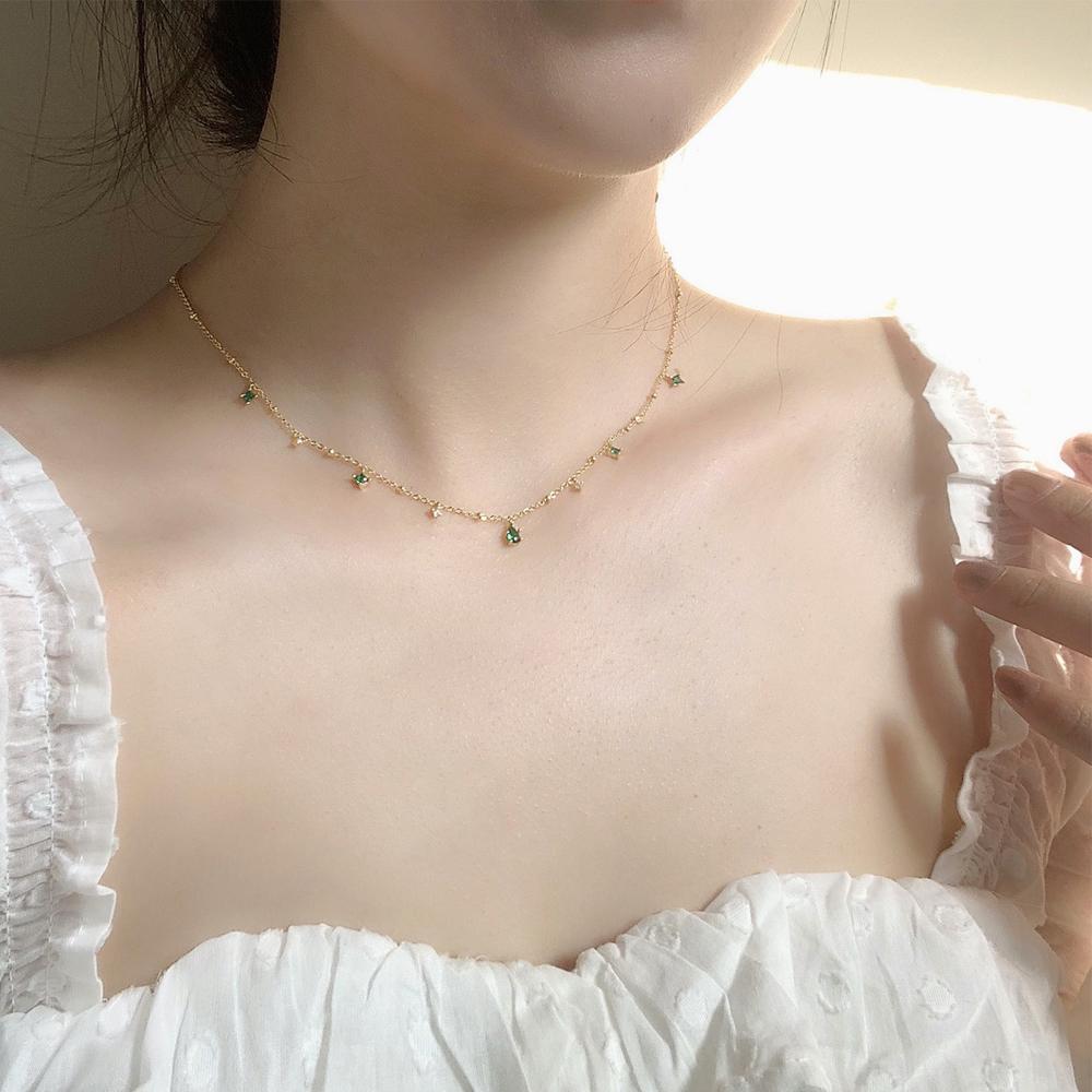 Simple Women Green Girls Clavicle Chain Choker Zircon Necklace Fashion Jewelry